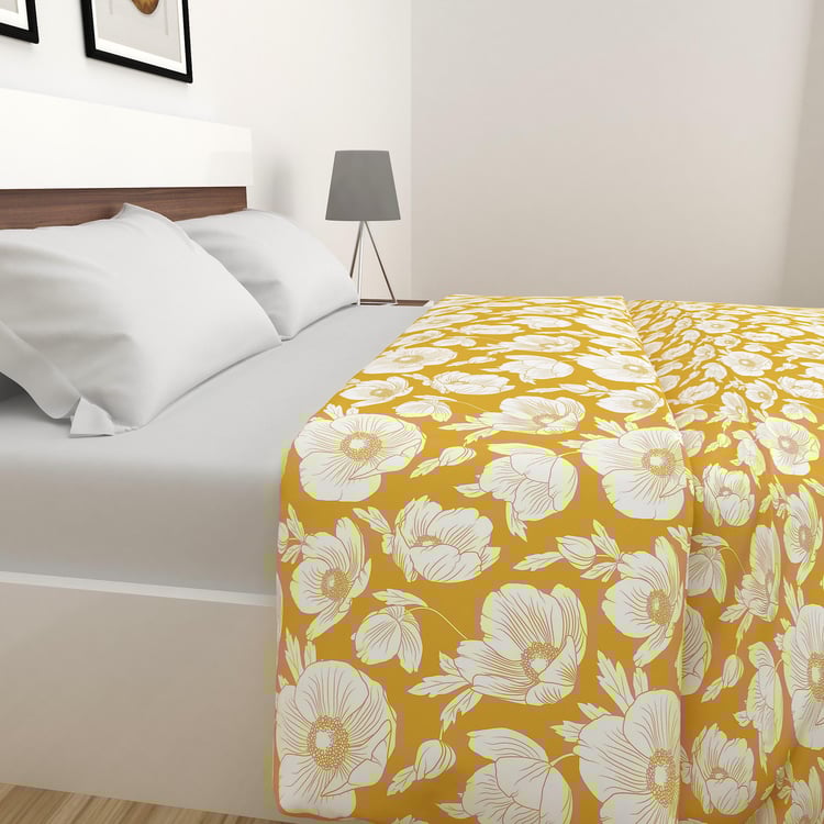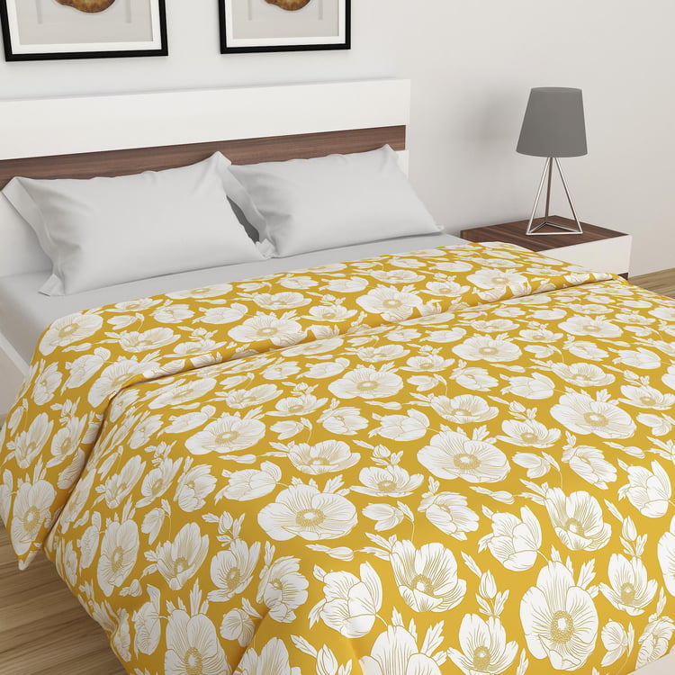 Juniper Poppy Yellow Floral Print Double Bed Comforter - 100 GSM