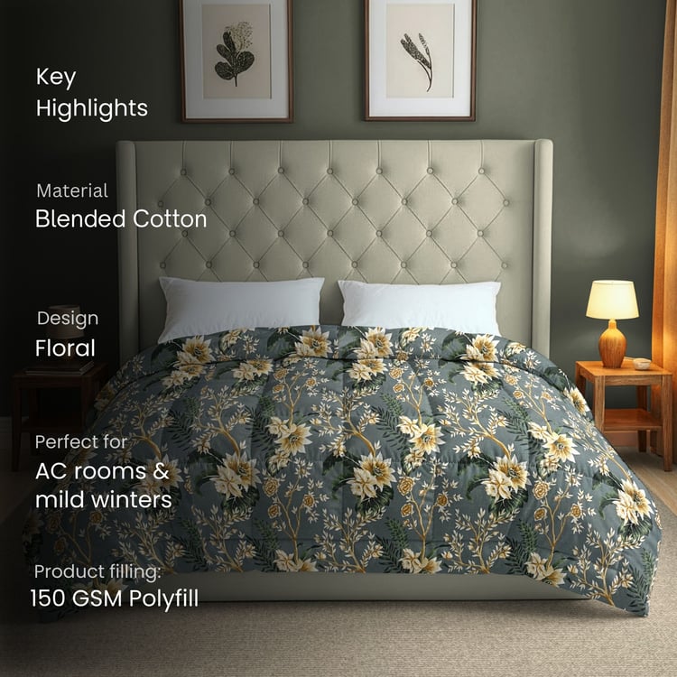 Bring elegance and comfort to your bedroom with this double comforter featuring prints. Soft, breathable, and cosy, it's perfect for AC rooms and mild winters, providing year-round comfort in moderate climates.
