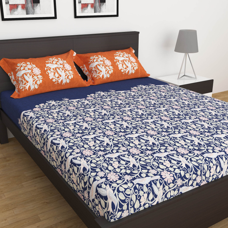 Ananda-Tales Floral Print 3-Piece Double Bedsheet Set - 228 x 274 cm