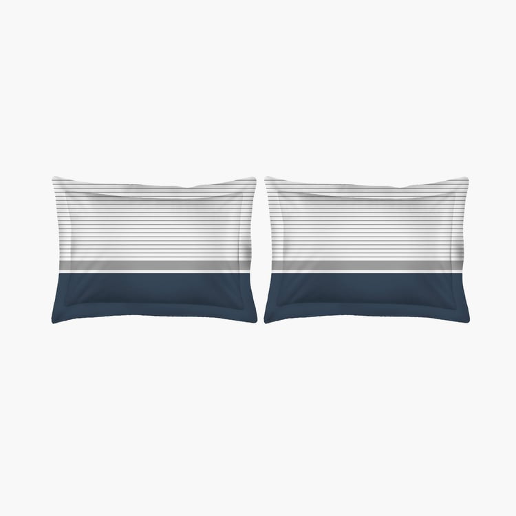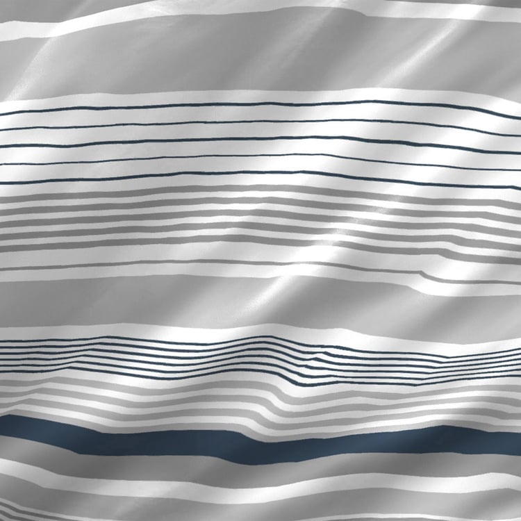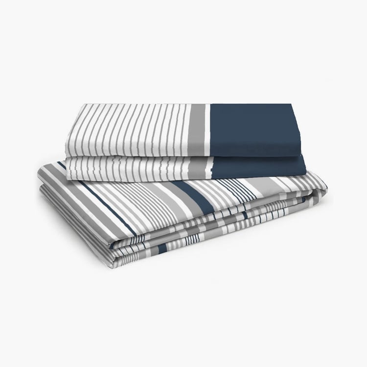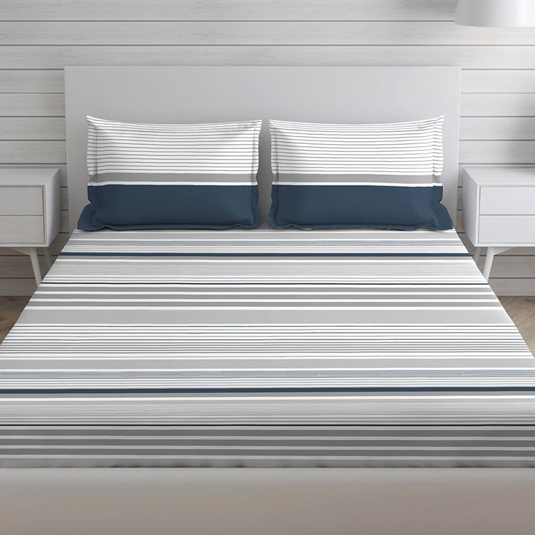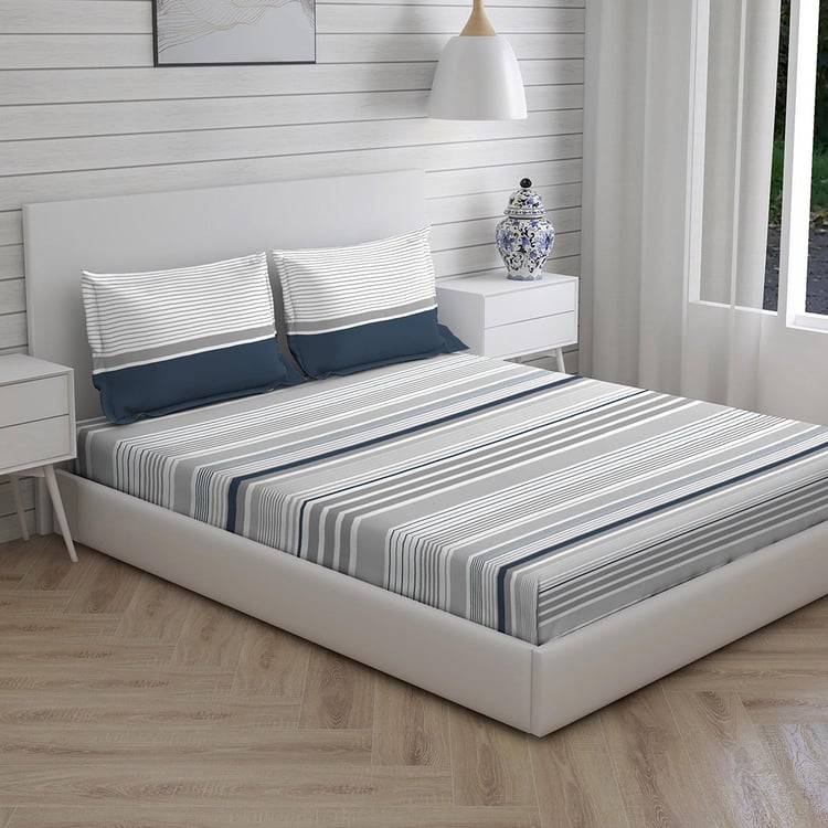 BOUTIQUE LIVING Erica Grey Striped Cotton Queen Bedsheet Set - 3Pcs