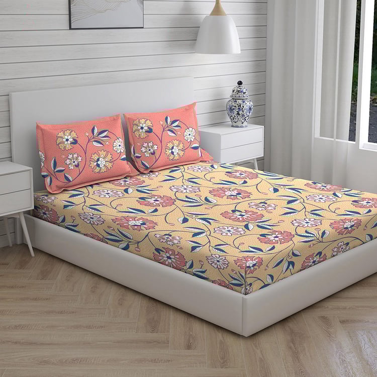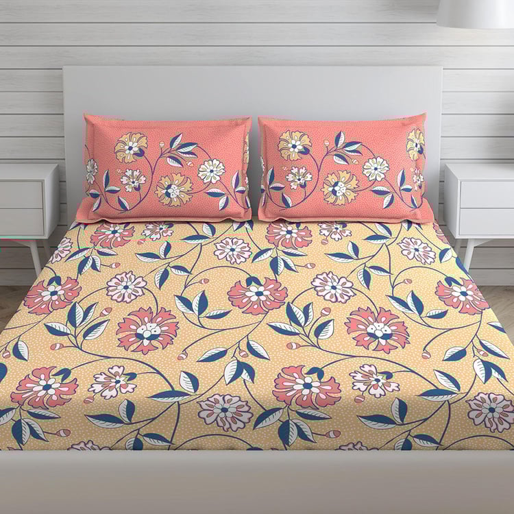 BOUTIQUE LIVING Erica Multicolour Printed Cotton Queen Bedsheet Set - 3Pcs
