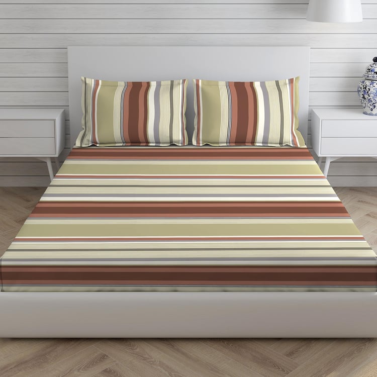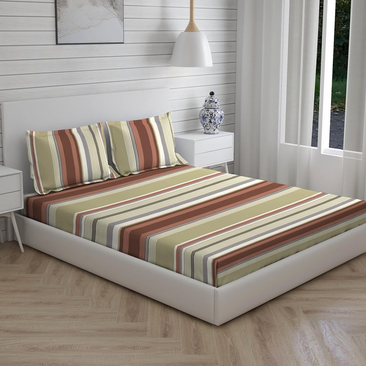 Defined by a sleek design on the surface, this bedsheet set is an ideal pick to impart a comfortable and fresh semblance to your bedroom. The set comes with a super-smooth and silky sateen weave bedsheet along with a pair of complementing pillow covers that are skin-friendly and vibrant. The set has been treated with heiQ finish with anti-microbial properties that make it anti-bacterial and odour-free.