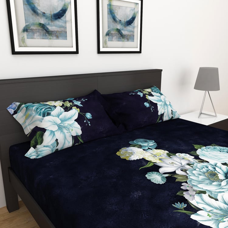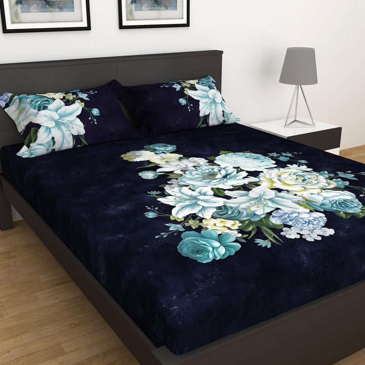 Blue Radiance Blue Printed Cotton Double Bedsheet Set- 3Pcs