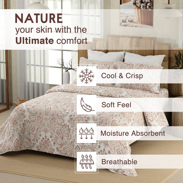 COLOR SENSE Serenity Cotton 200TC Floral Print 3Pcs Queen Bedsheet Set