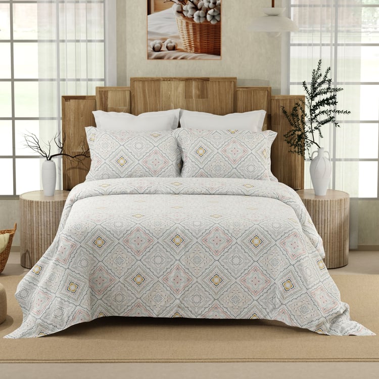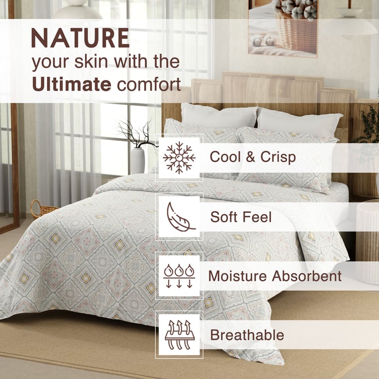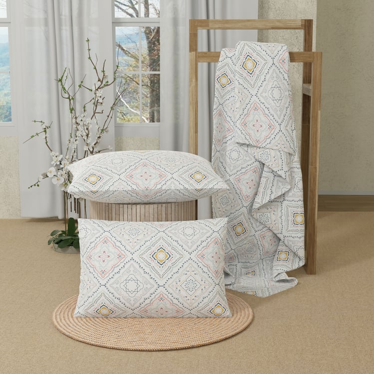 COLOR SENSE Serenity Cotton 200TC Printed 3Pcs Queen Bedsheet Set