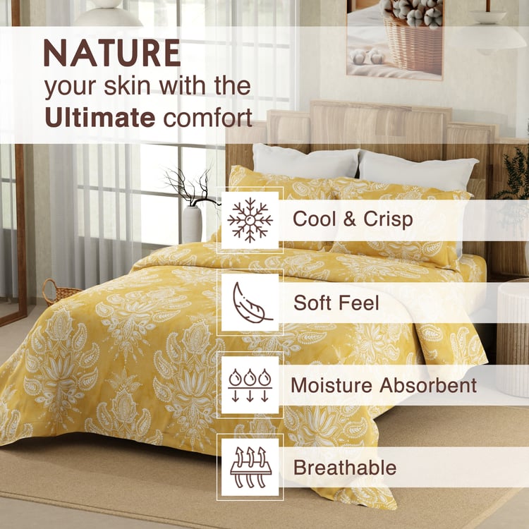 COLOR SENSE Serenity Cotton 200TC Printed 3Pcs Queen Bedsheet Set