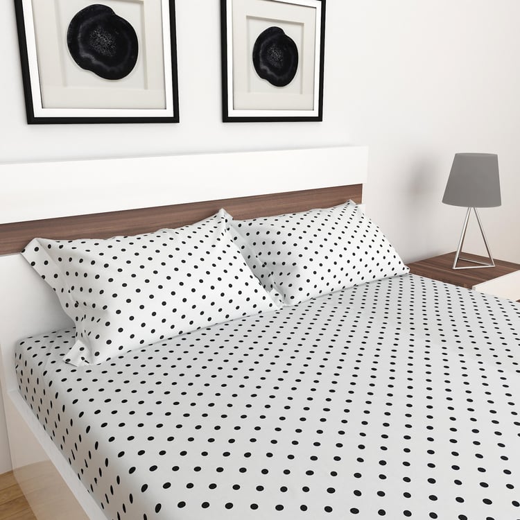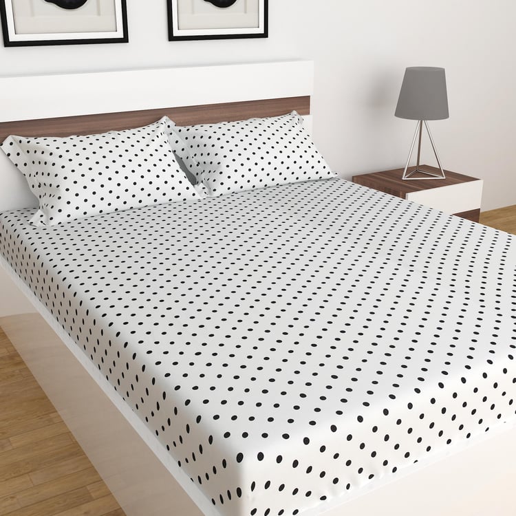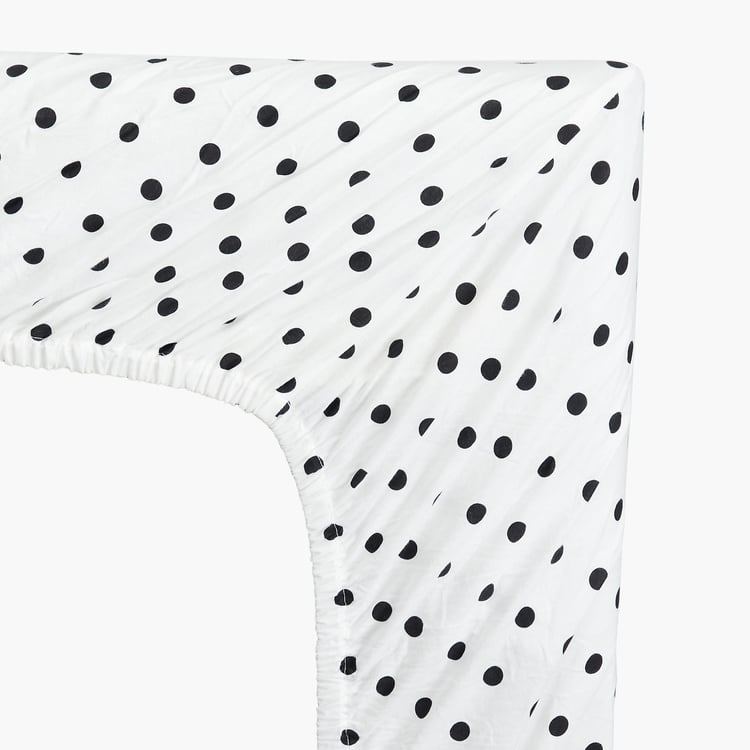 Charlie White Polka Dot Print Cotton King Fitted Bedsheet Set - 180x195cm - 3Pcs