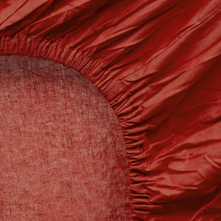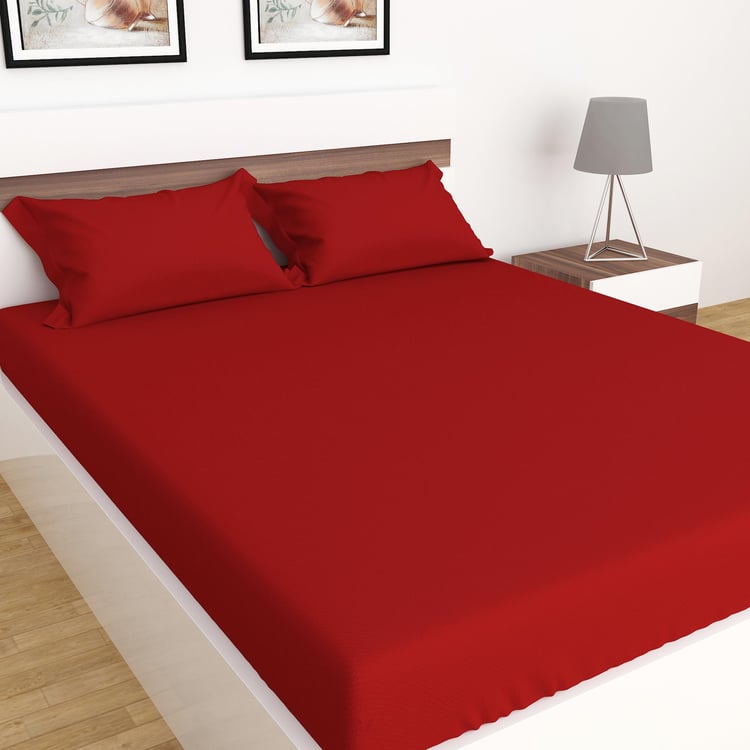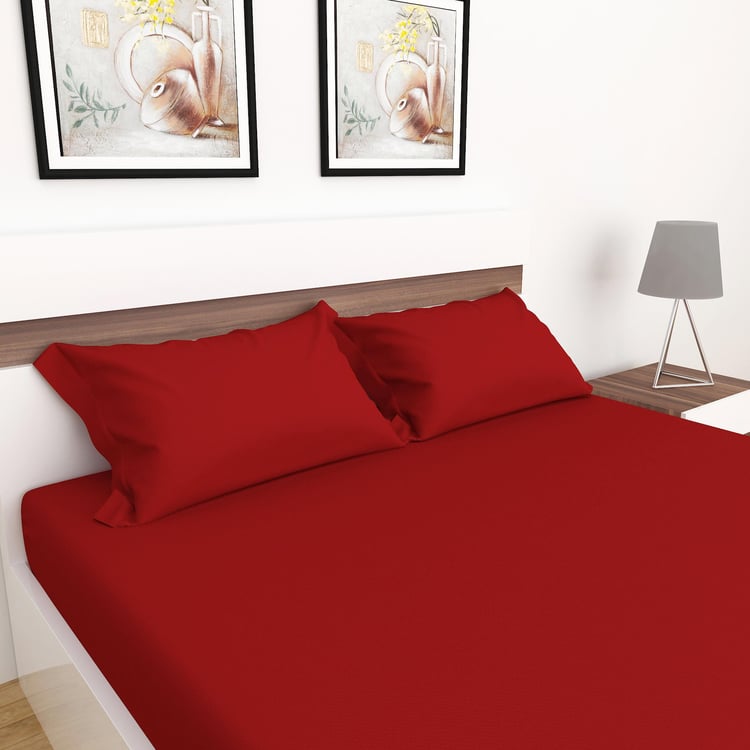 Colour Connect Solid Cotton Fitted Sheet : 1.80 m x 1.95 m, Pillow Cover : 40 cm x 70 cm Red