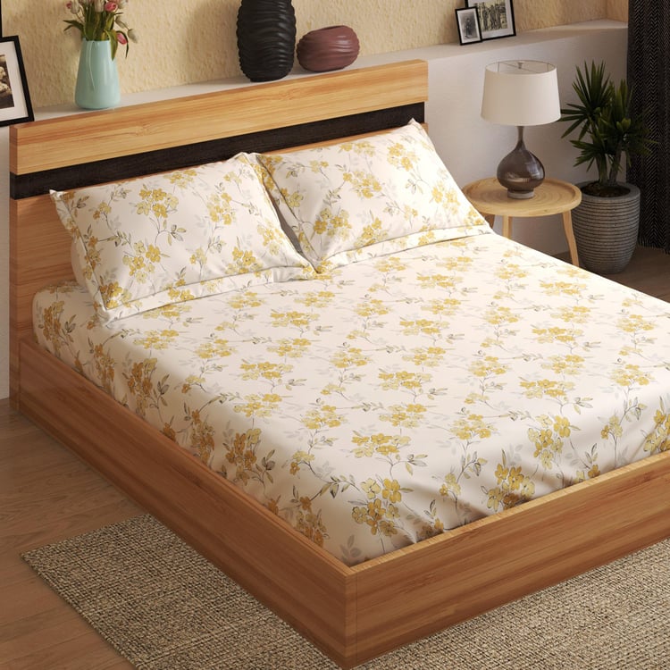 Colour Refresh Cotton 144TC Floral Printed 3Pcs King Fitted Bedsheet Set