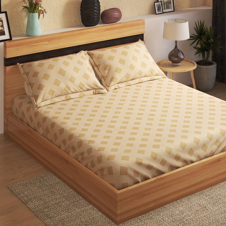 Colour Refresh Cotton 144TC Geometric Printed 3Pcs Queen Fitted Bedsheet Set