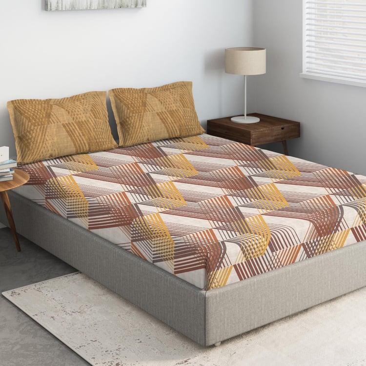 D'DECOR Optima Printed 3-Piece Double Bedsheet Set - 2.28m x 2.54 m