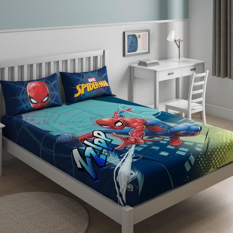 Highlight the aesthetics of your bedroom with this king-size bedsheet set. This set comes with a Spiderman-printed bedsheet and two pillow covers. It is made from a soft material that provides your little one with a peaceful nap.