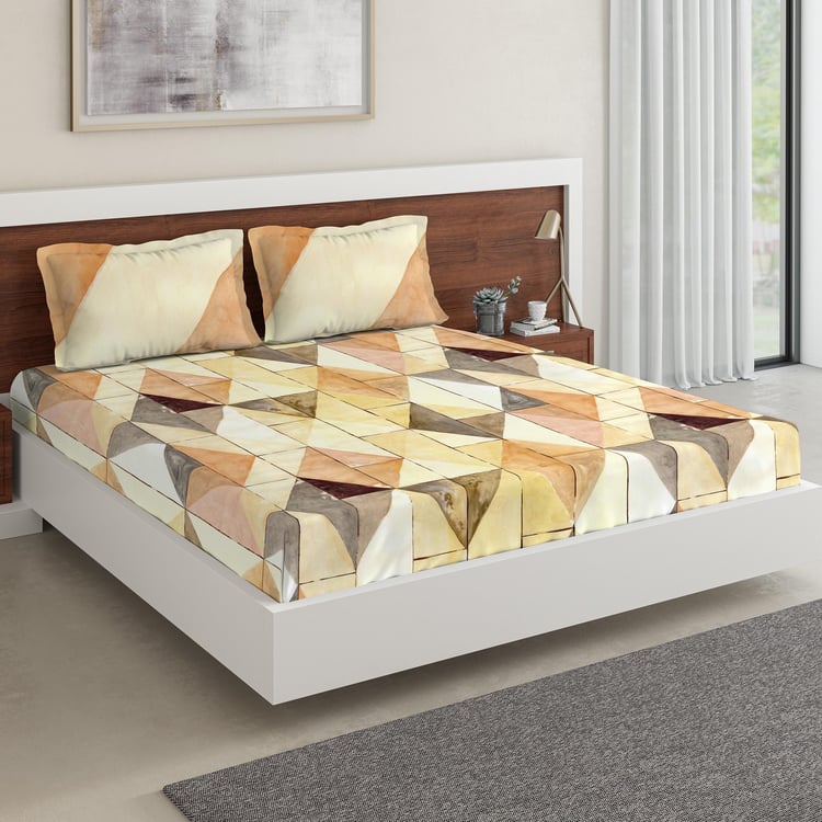 D'DECOR Maxima Printed 3-Piece Double Bedsheet Set - 2.74 m x 2.74 m