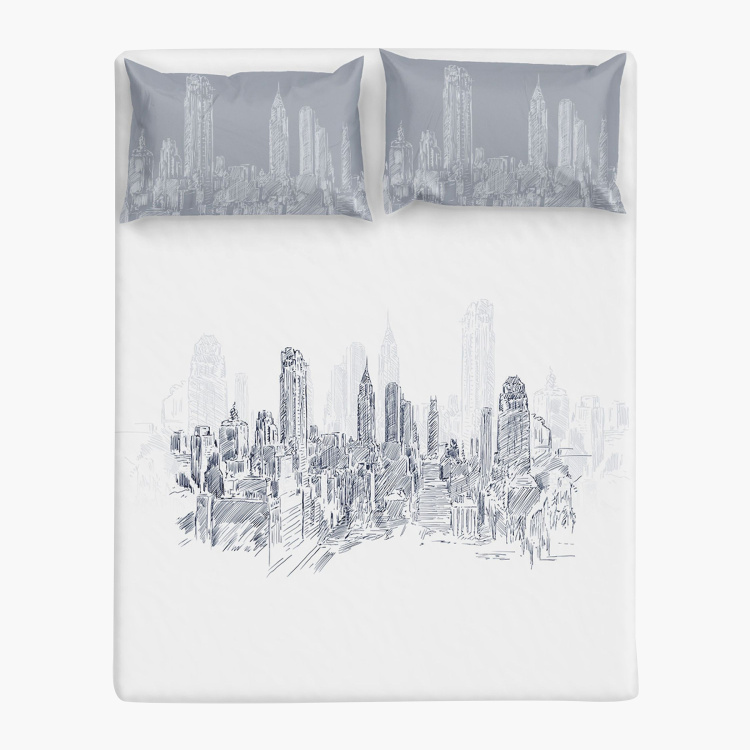 D'DECOR The Slate Printed 3-Pc. King Size Bedsheet Set - 274 x 274 cm
