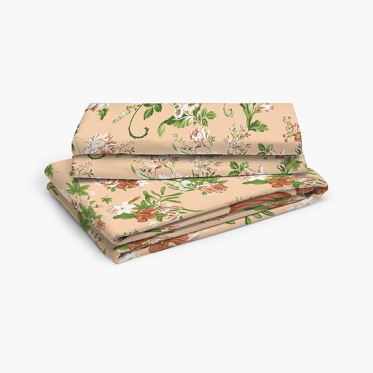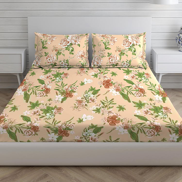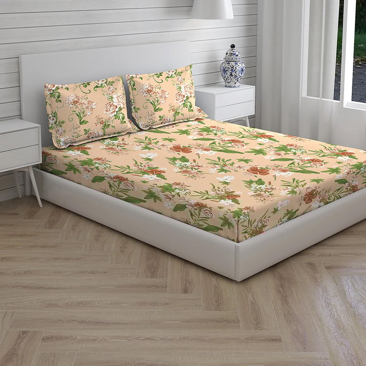 LAYERS Arizona Beige Cotton Queen Size Bedsheet Set - 224x254cm - 3Pcs