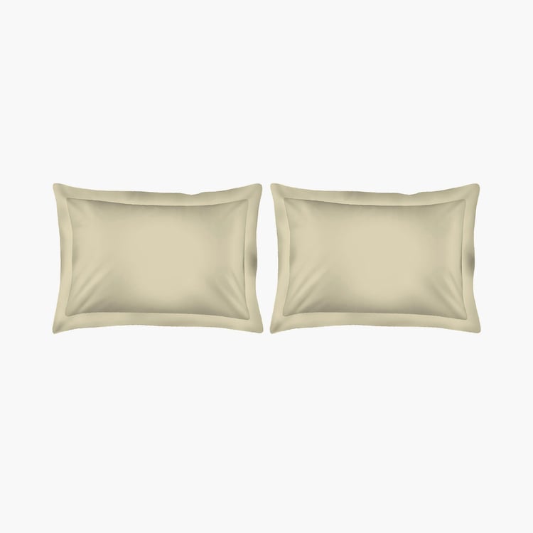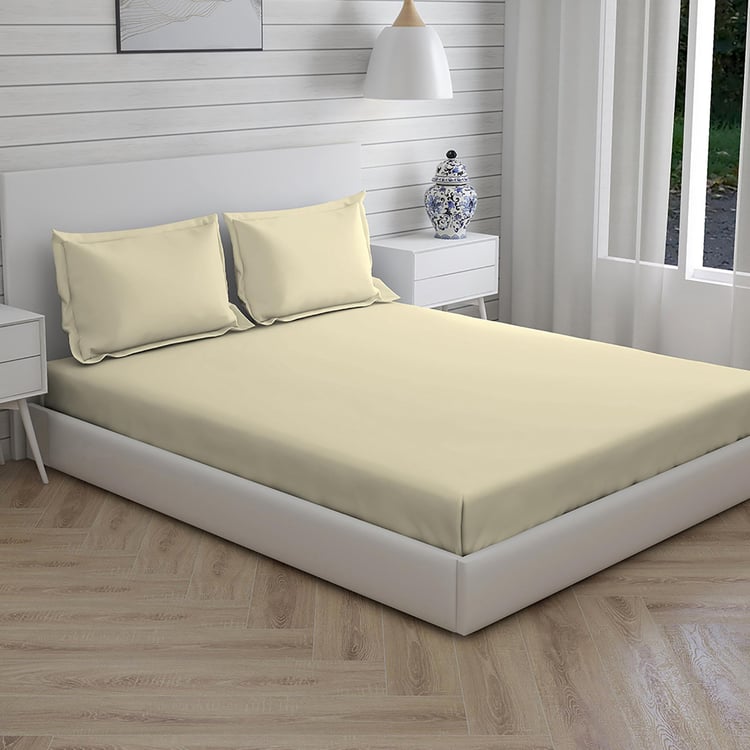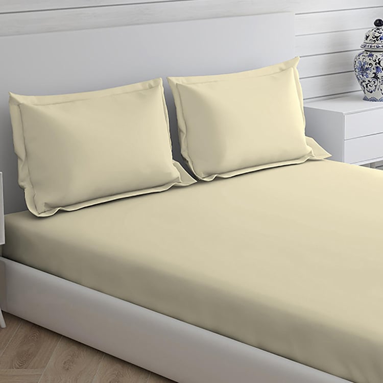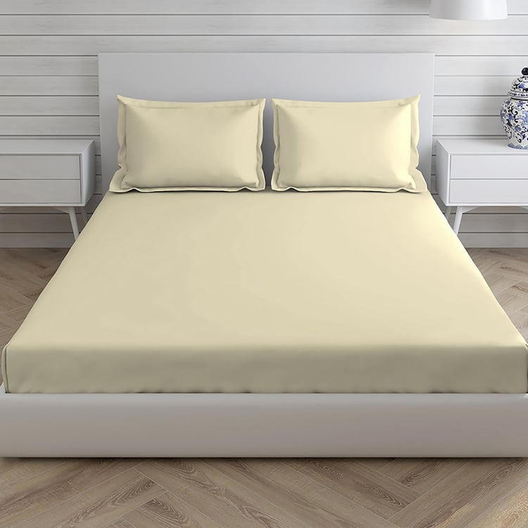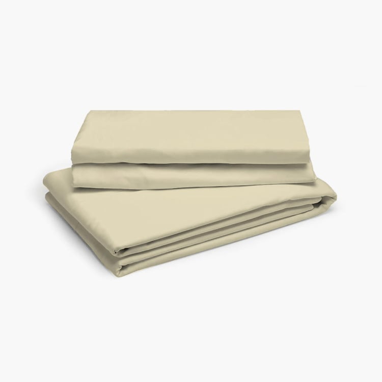 LAYERS Be Bold Beige Solid Cotton King Bedsheet Set - 229x274cm - 3Pcs