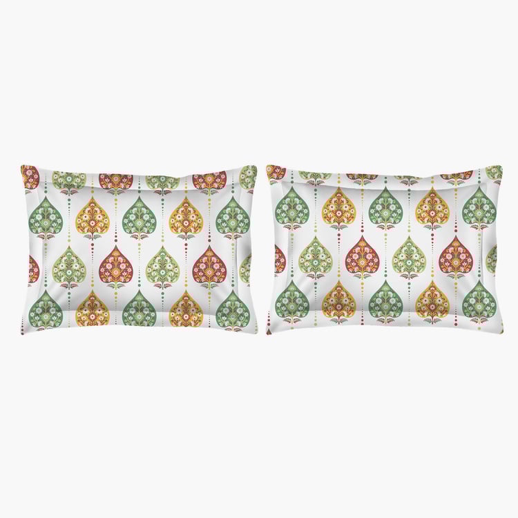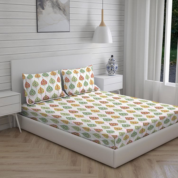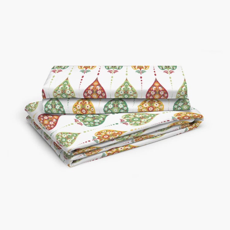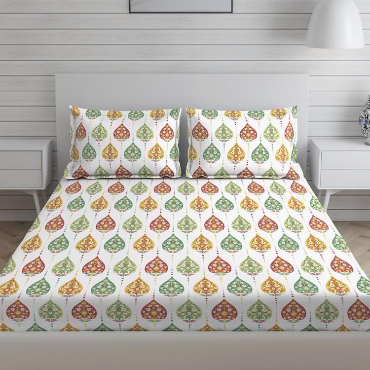 LAYERS Bologna White Floral Printed Cotton King Bedsheet Set – 224x275cm - 3Pcs