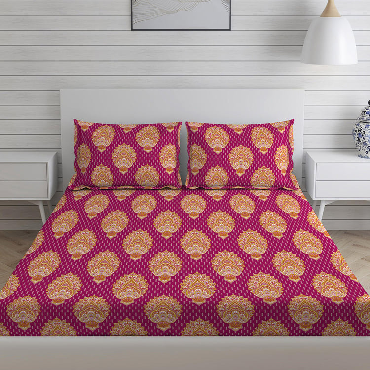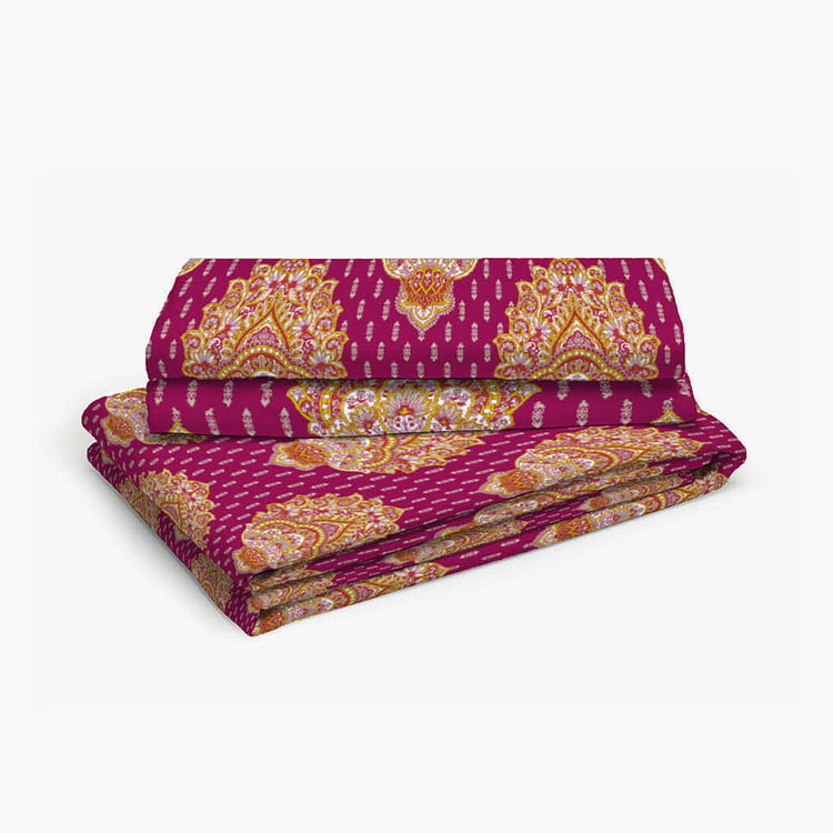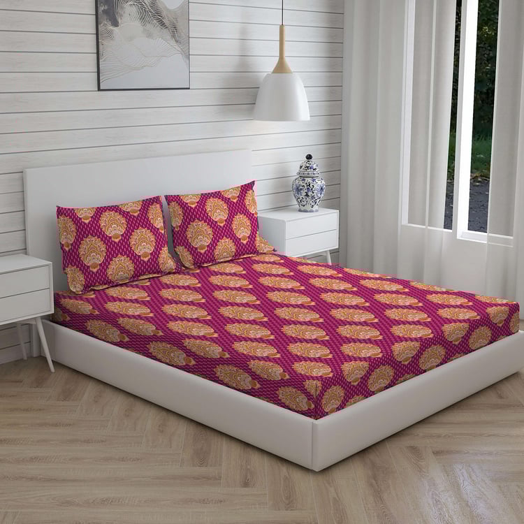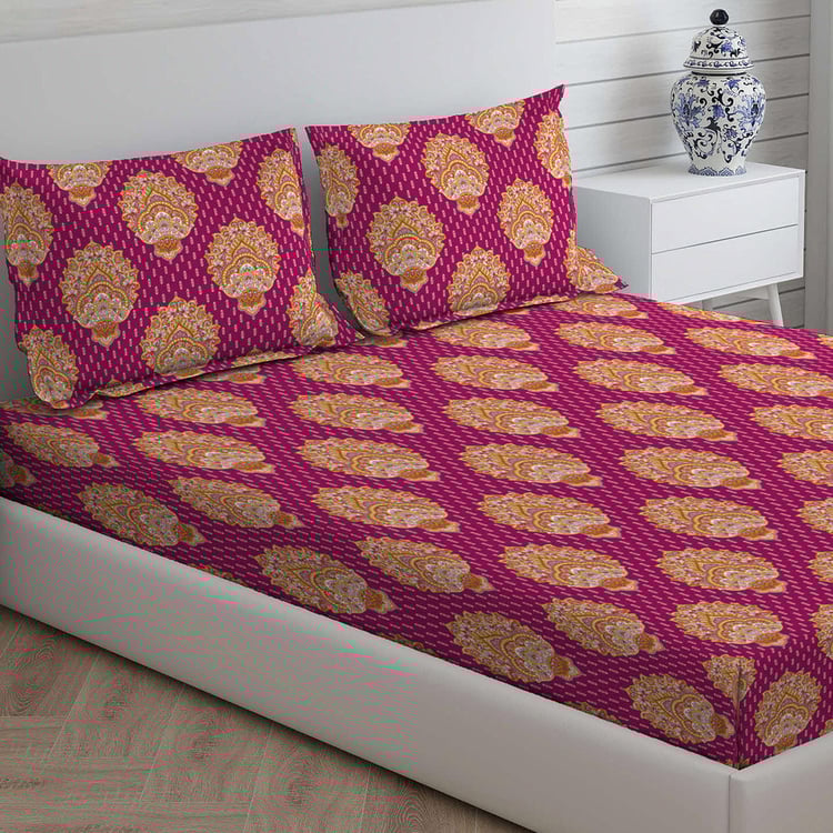 LAYERS Marsala Pink Cotton Super King Bedsheet Set - 274x274cm - 3Pcs