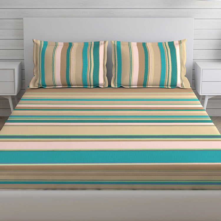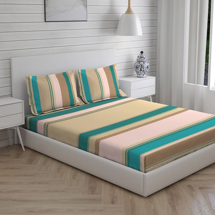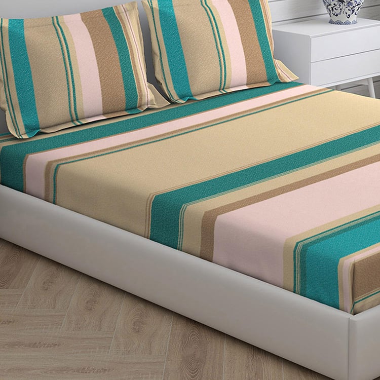 LAYERS Milano Beige Printed Cotton Double Bedsheet Set- 3Pcs