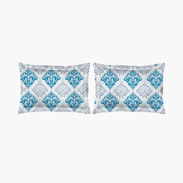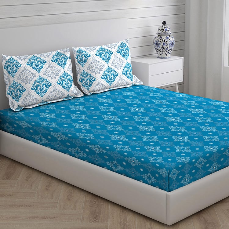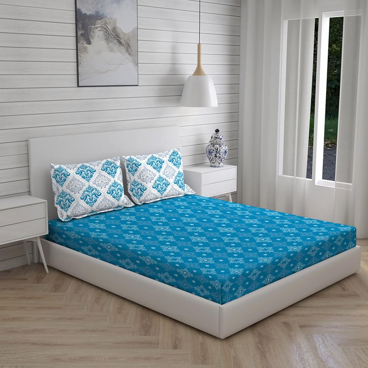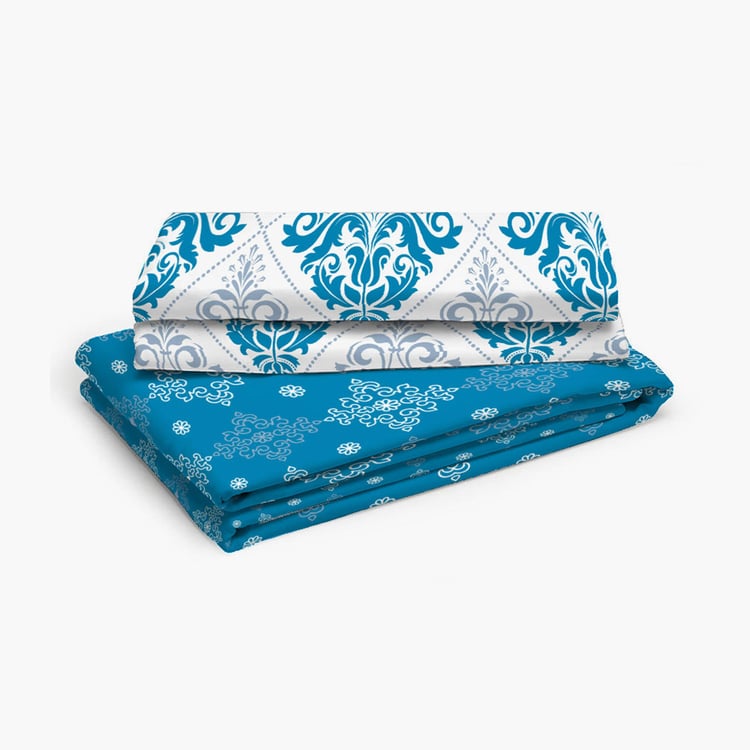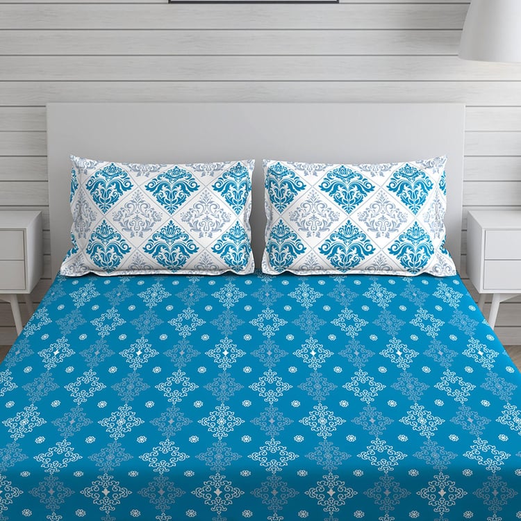 LAYERS Milano Dark Blue Printed Cotton King Bedsheet Set - 3Pcs