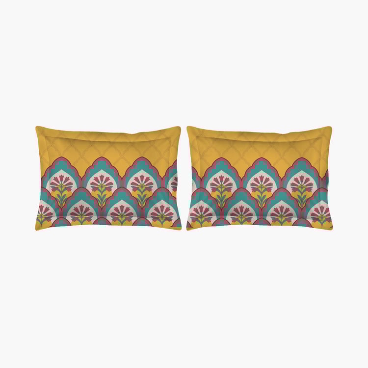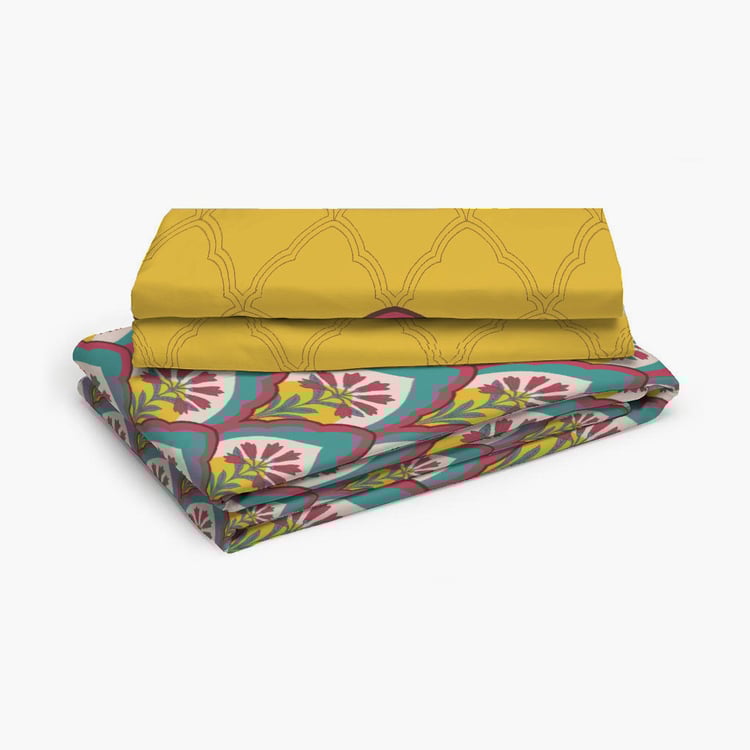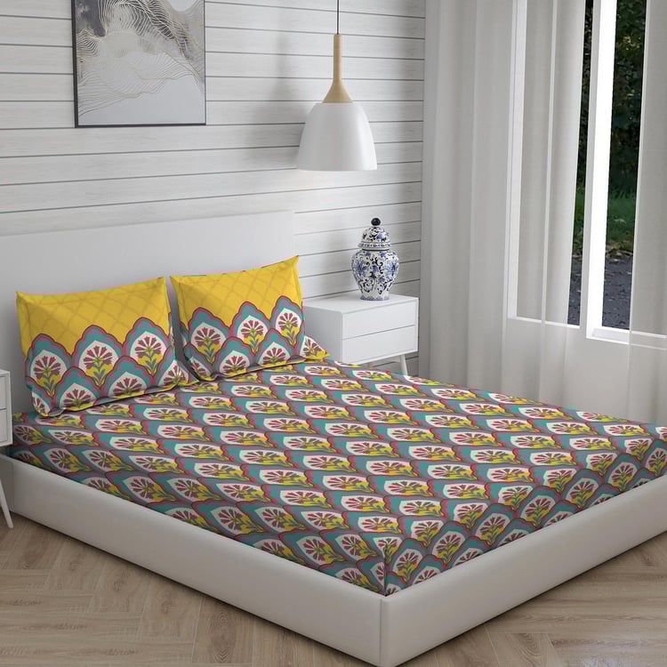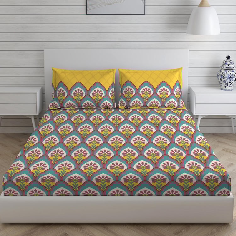 LAYERS Utsav Green Ethnic Printed Cotton Queen Bedsheet Set - 254x224cm - 3Pcs