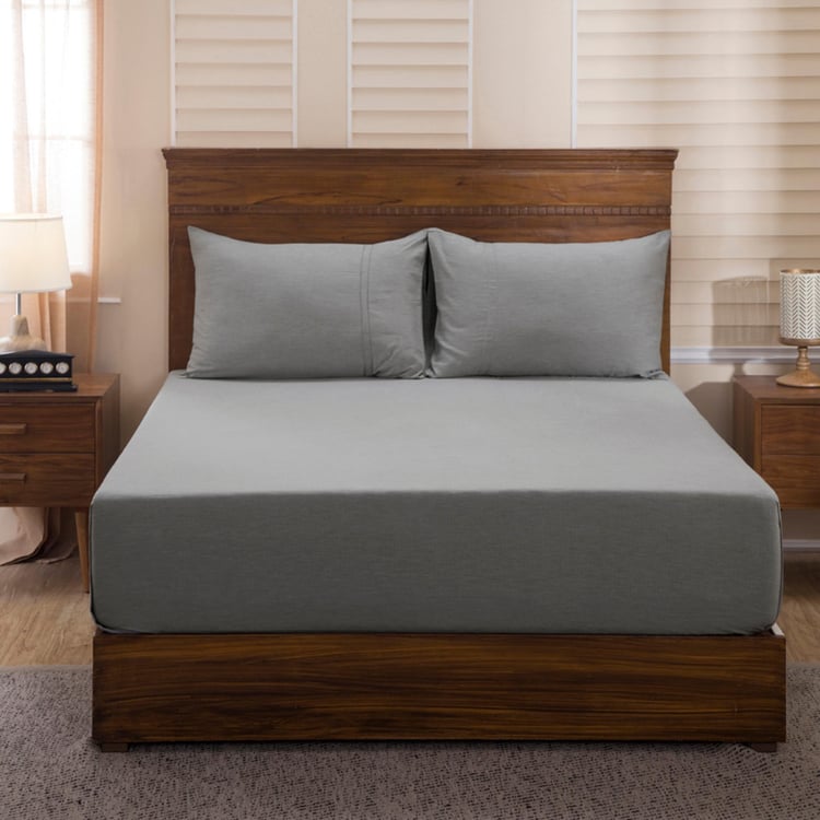 With a monotone background taking complete ownership for its unique look, this eye-catching bedsheet set lets the contemporary aura of your personal space stay intact.
