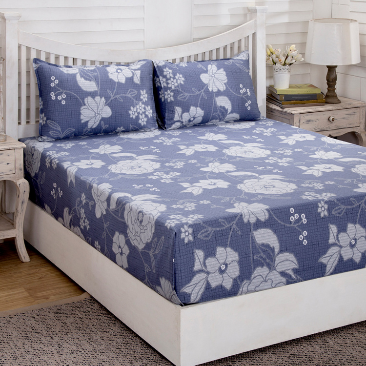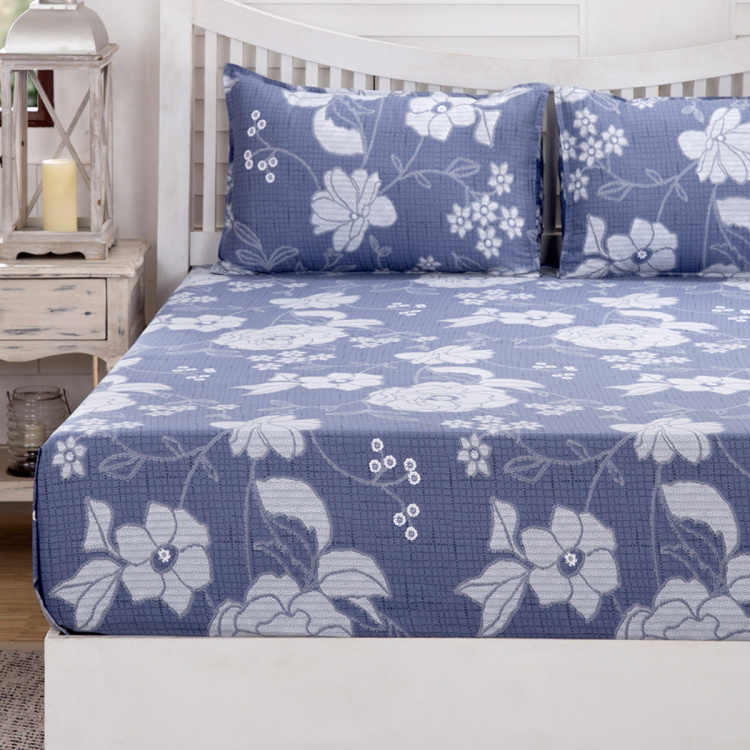 MASPAR Essence Floral Print Cotton Double Bedsheet with Pillow Covers - 3Pcs.