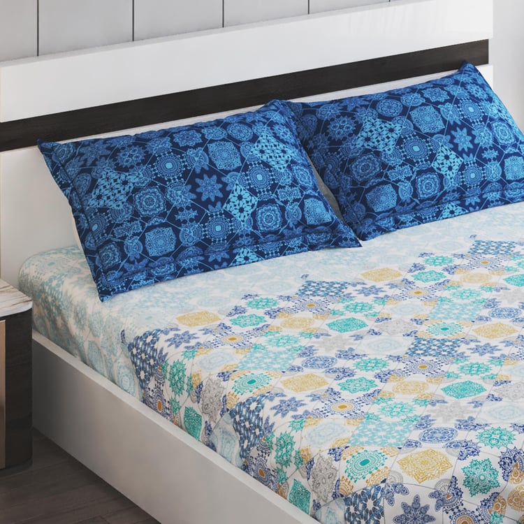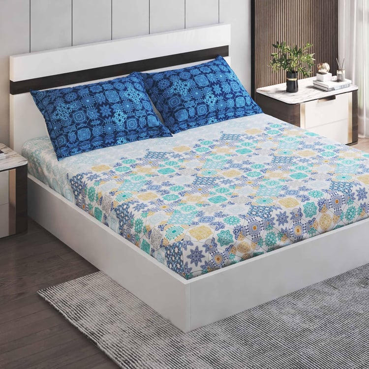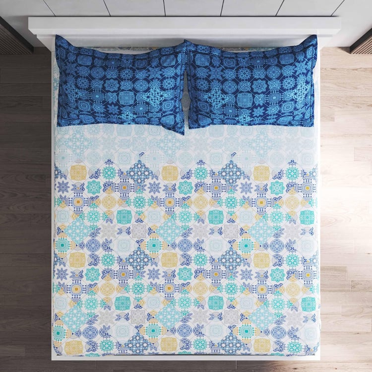 Medley Santorini Cotton 180TC Printed 3Pcs King Bedsheet Set