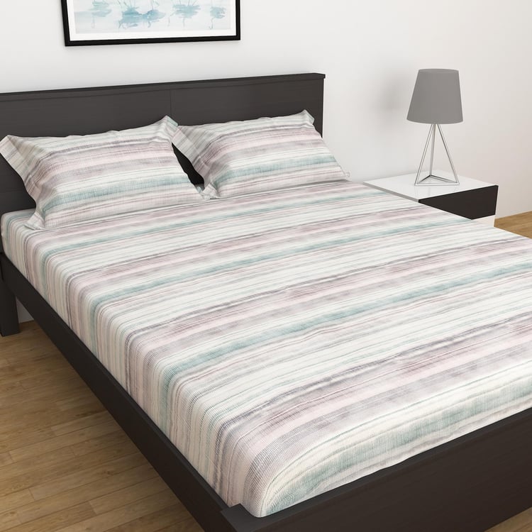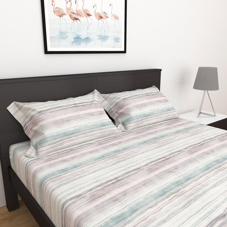 Miami - Multicolour Printed Cotton Double Bedsheet Set - 3Pcs
