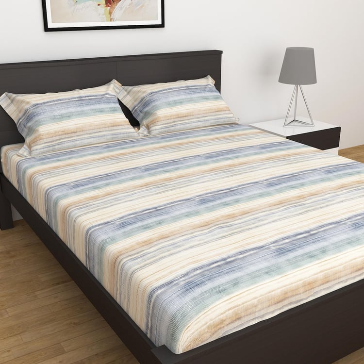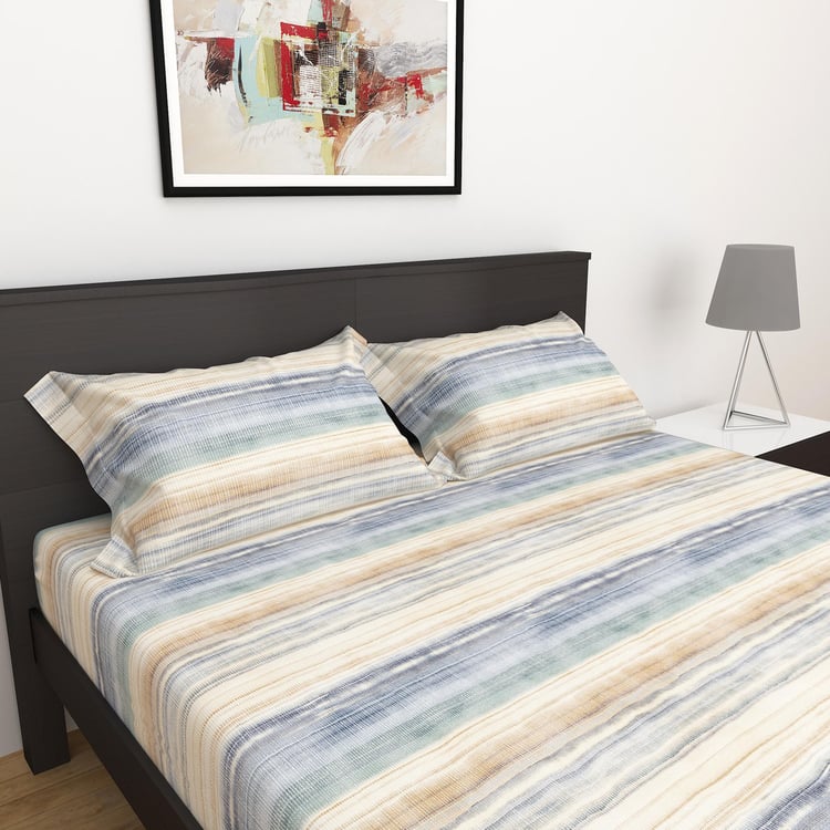 Miami - Multicolour Printed Cotton Double Bedsheet Set-3Pcs