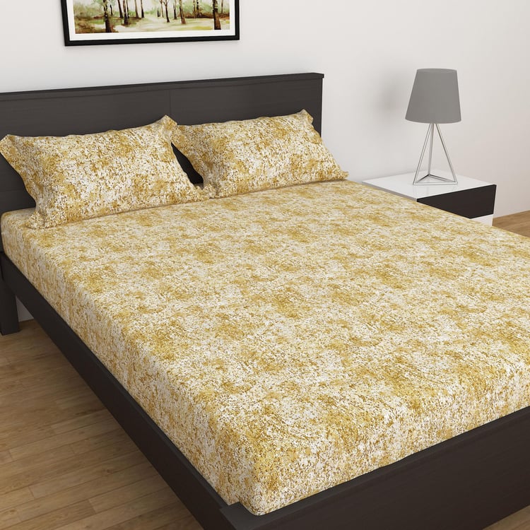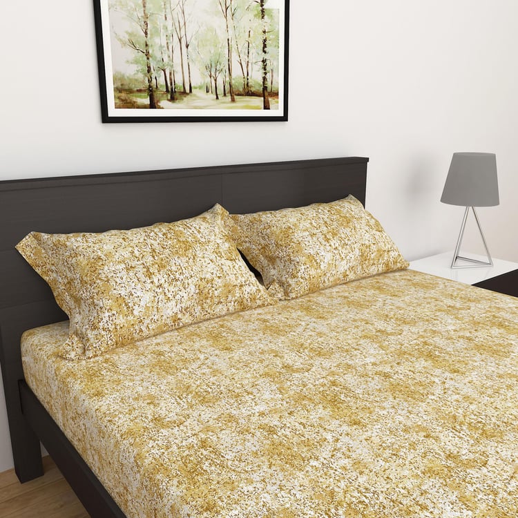 Miami - Yellow Printed Cotton Double Bedsheet Set- 3Pcs