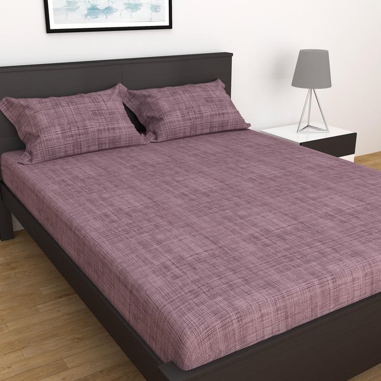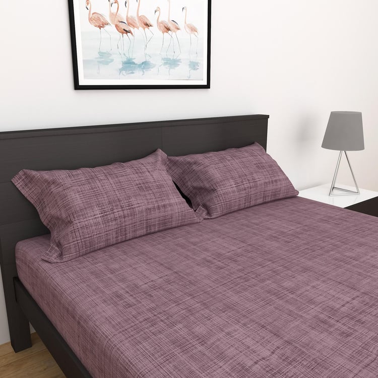 Miami-Purple Printed Double Bedsheet Set-3Pcs-154TC
