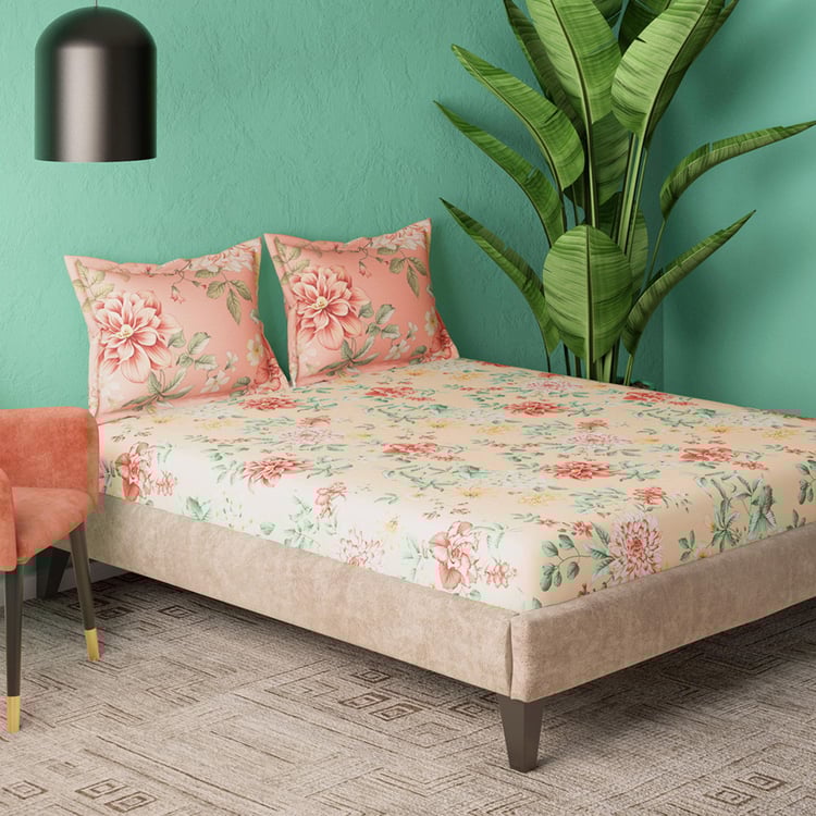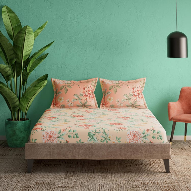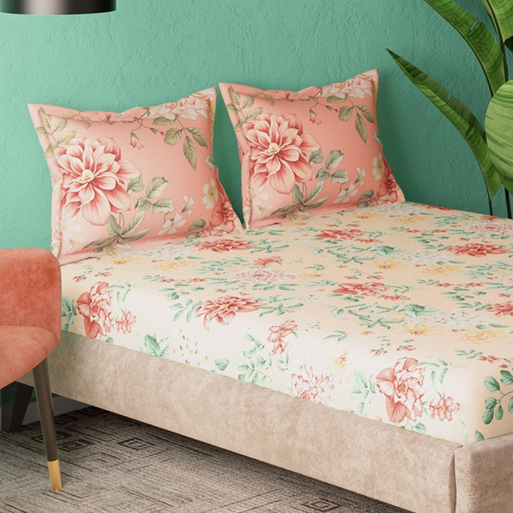 PORTICO Cadence Cotton 152TC Printed 3Pcs Queen Fitted Bedsheet Set