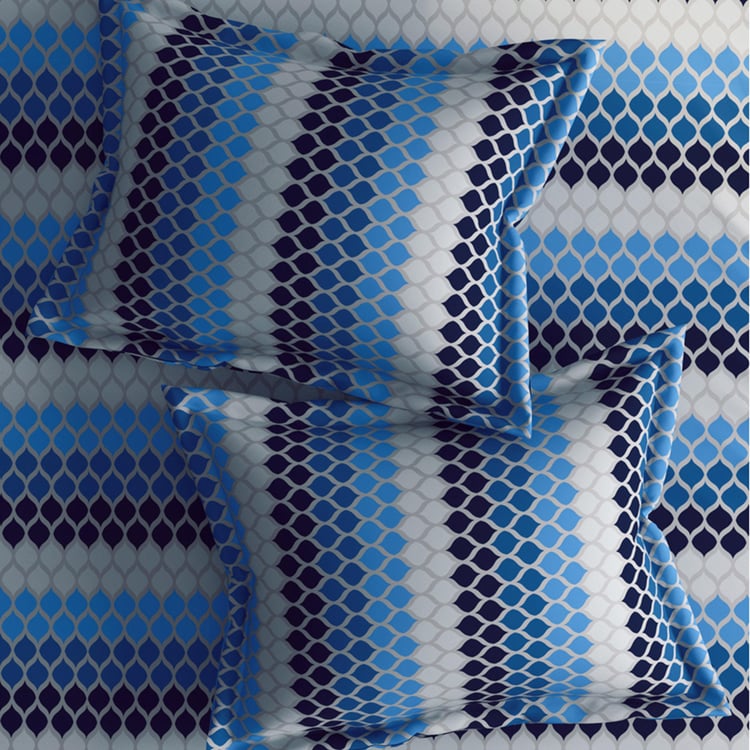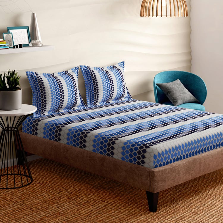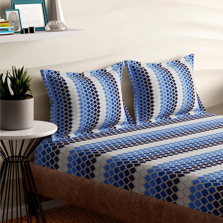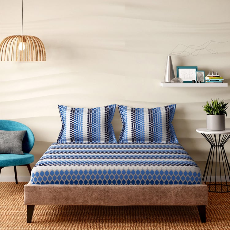 PORTICO Floral Romance Blue Printed Cotton Super King Bedsheet Set - 274x274cm - 3Pcs