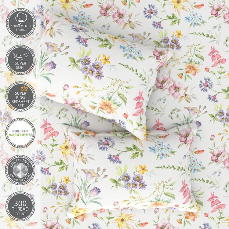 PORTICO Garden of Eden Cotton 300TC Floral Print 3Pcs Super King Bedsheet Set