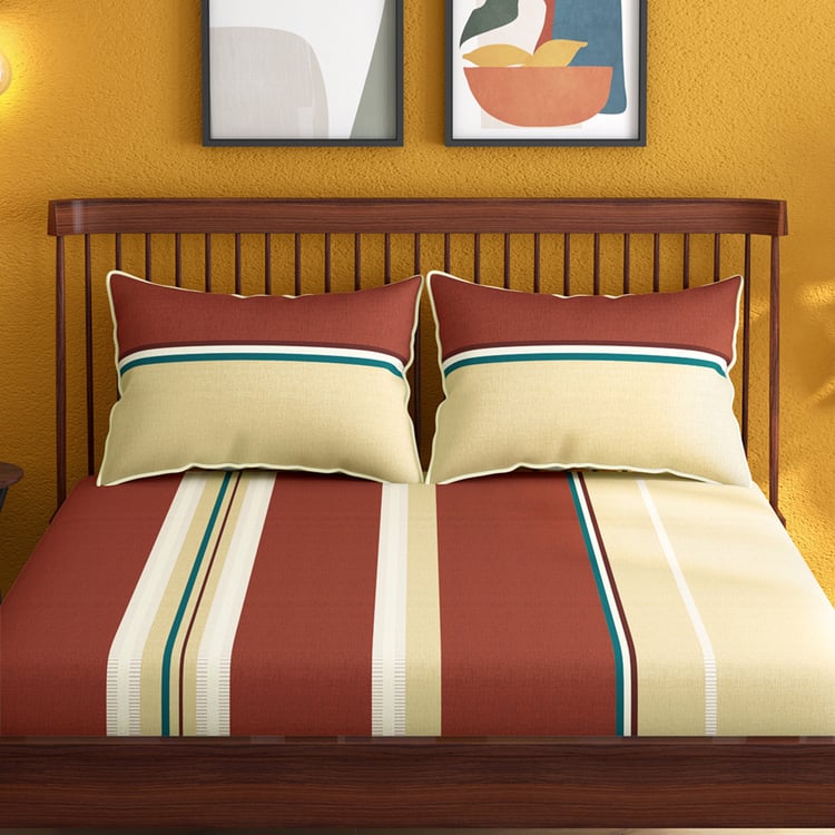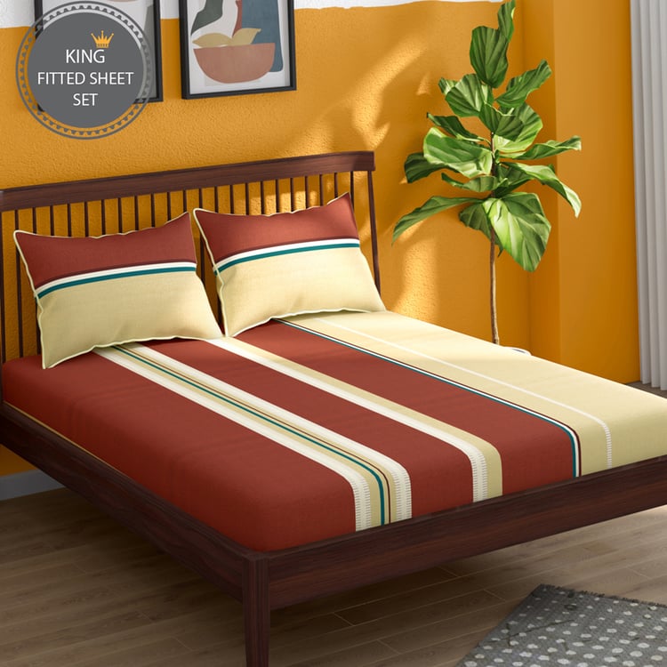 PORTICO Hashtag Cotton 152TC Striped 3Pcs King Fitted Bedsheet Set