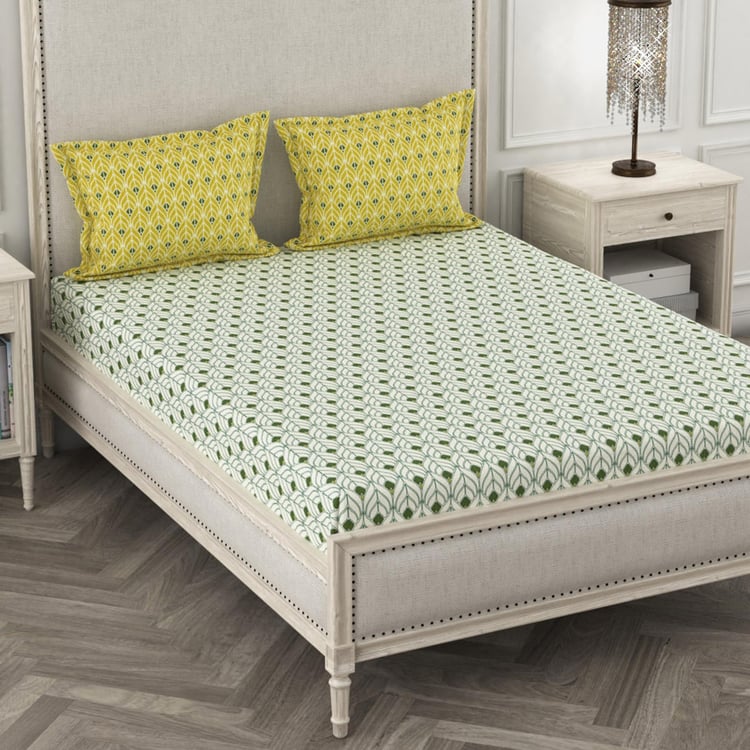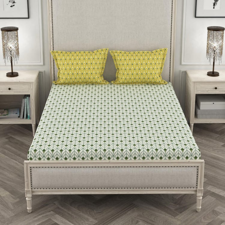 Ultimate in its sophistication, the indulgently soft super king-sized bedsheets from the House of Misu by Portico are a class apart! Designed in a gorgeous raindrop pattern featuring a palette in refreshing yellows and forest greens, it will surely invigorate your home!
