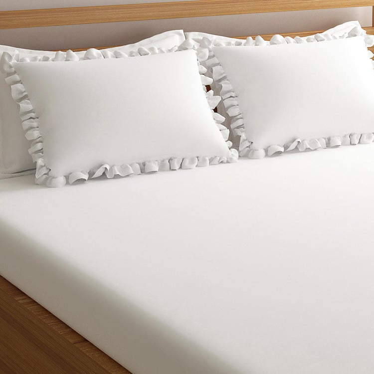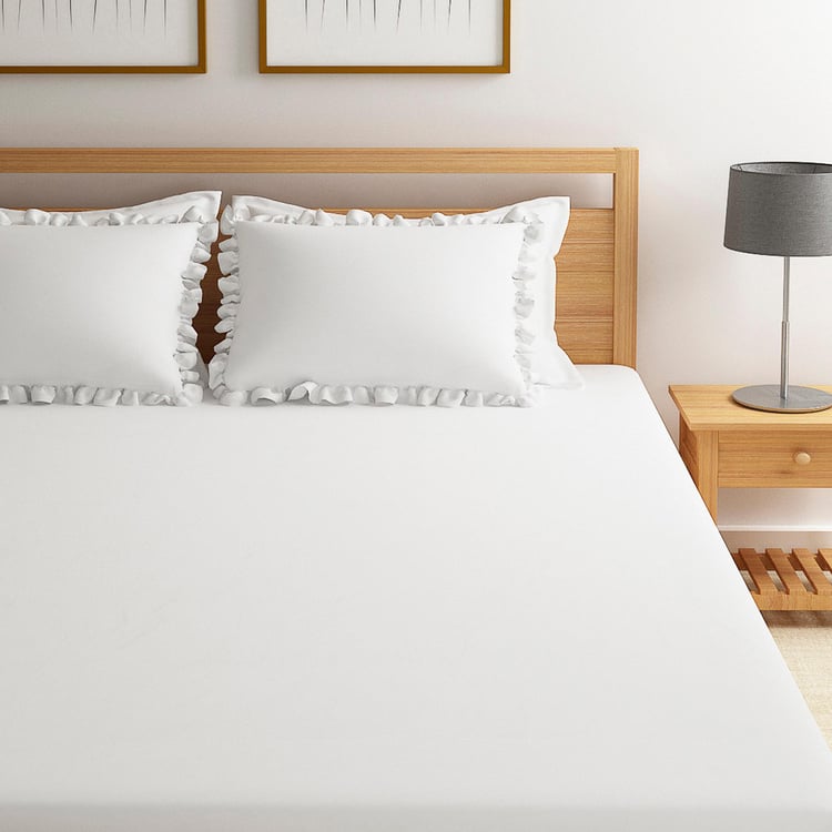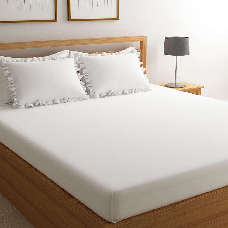 Simplicity, purity and symbolizing a new beginning, the pristine white luxury bed sheets in super king size from Just Us embodies the spirit of togetherness and living in the moment! Make every bit of it magical and sensual as you explore and pamper your senses between the super-soft bed sheets adorning a subtle sheen.