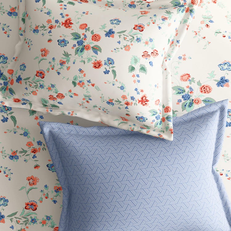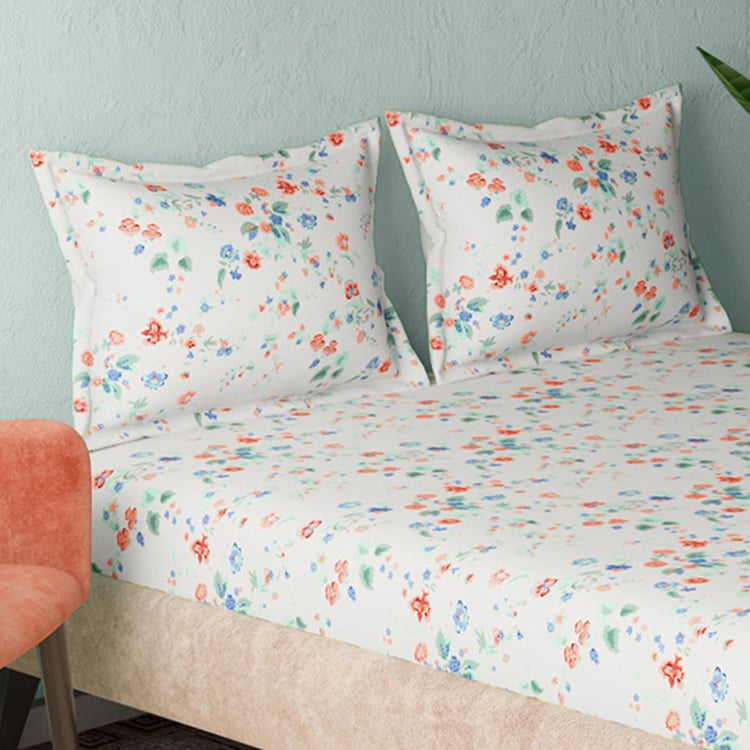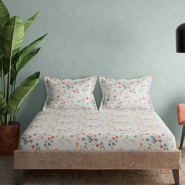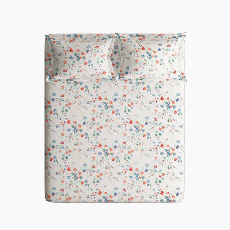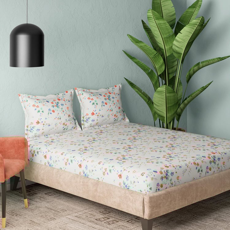 PORTICO Whispering Tales White Printed Cotton Super King Bedsheet Set - 274x274cm - 3Pcs