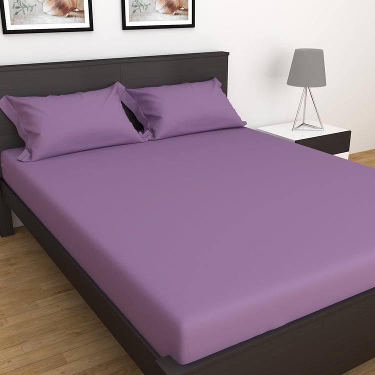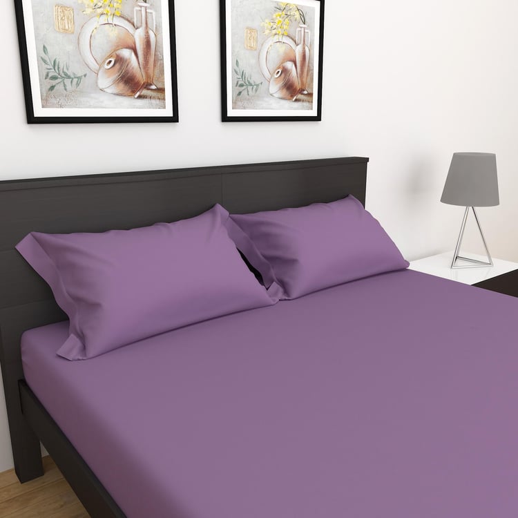 Royal Indulgence Purple Solid Super King Bedsheet Set - 274x274cm - 3Pcs