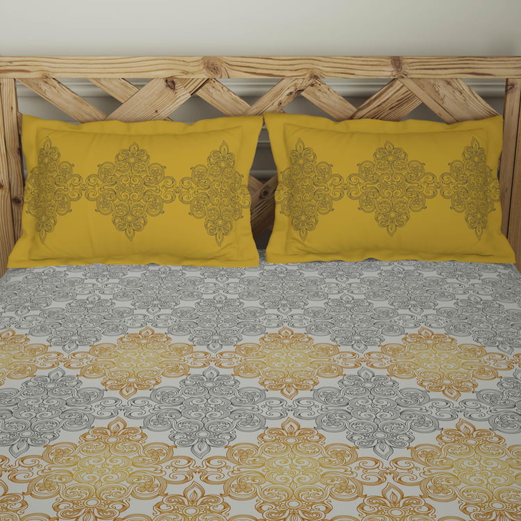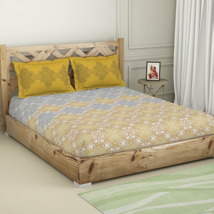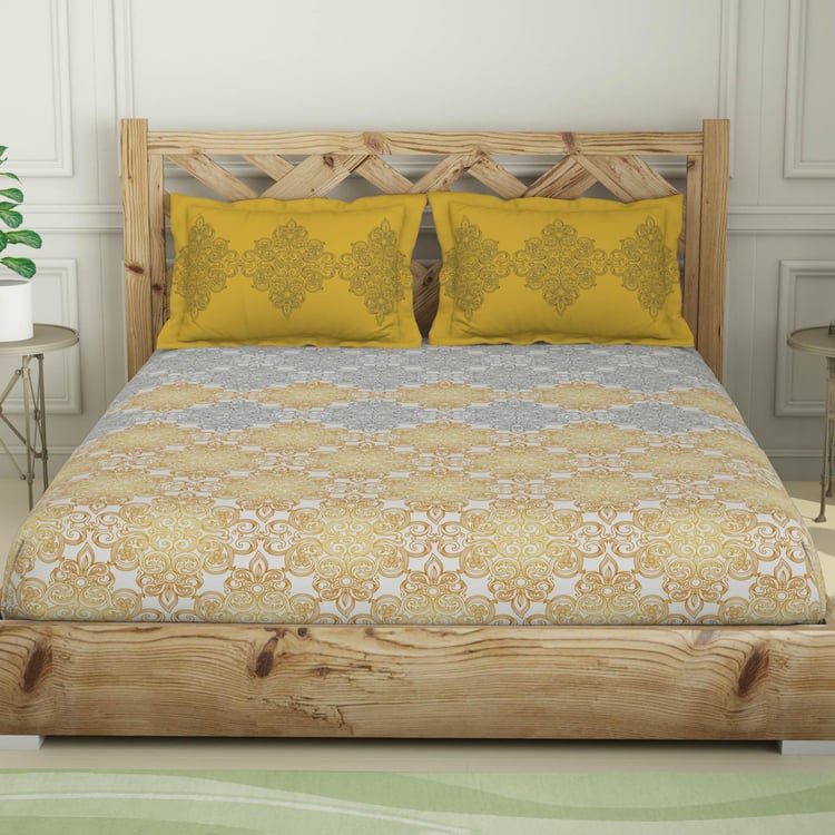 SPACES Atrium-Gold Printed Double Bedsheet Set-3Pcs