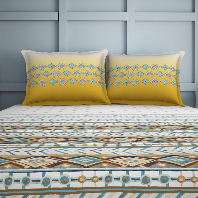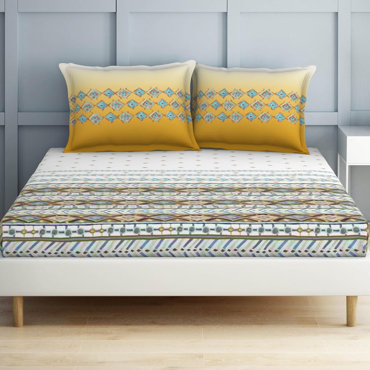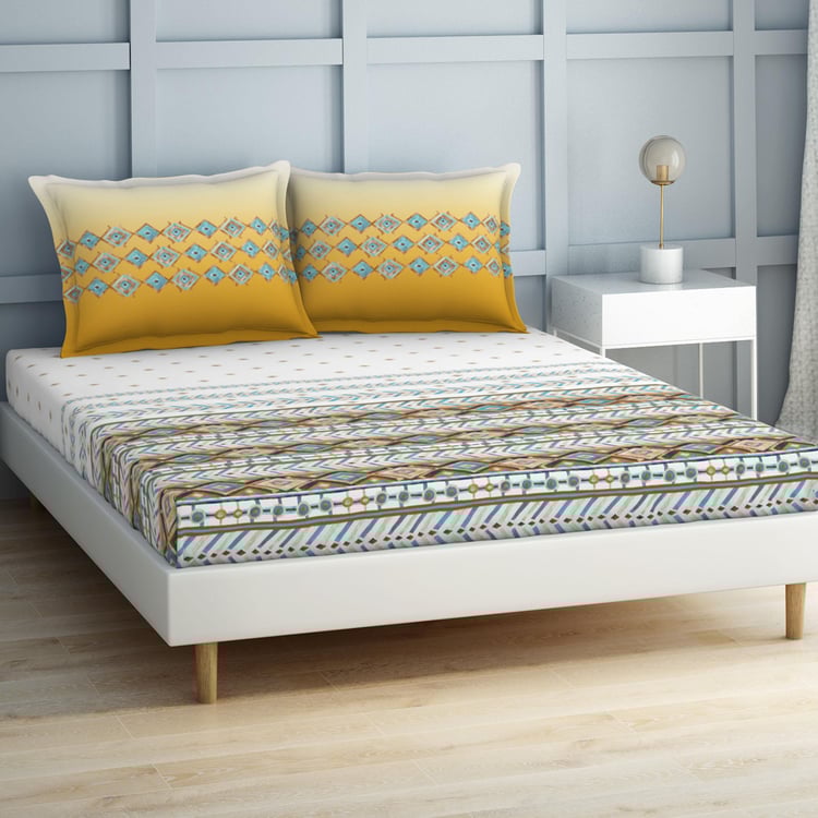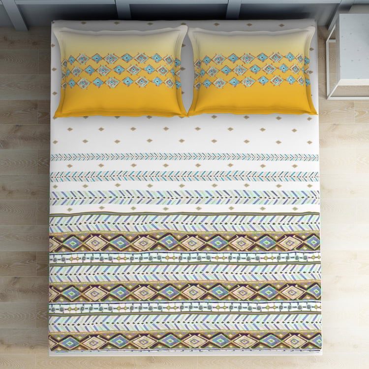 SPACES Bohochic Multicolour Printed Air Purifying Cotton Super King Bedsheet Set - 274x274cm - 3Pcs