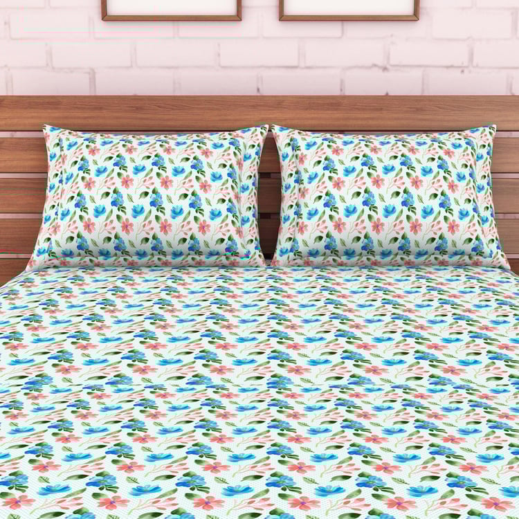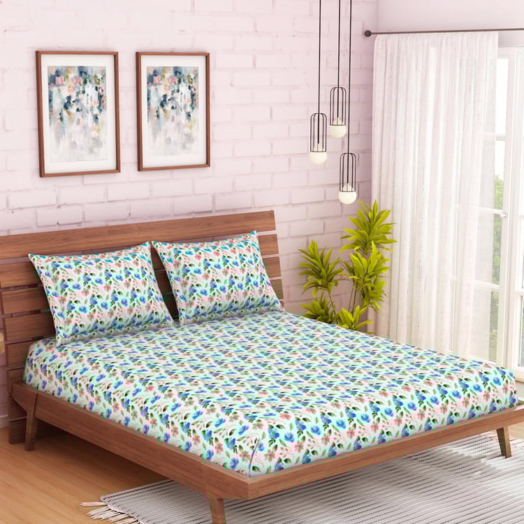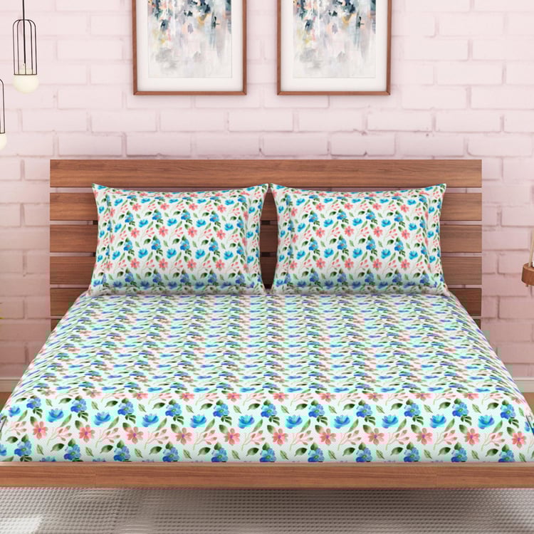 This vibrant and lightweight double bedsheet set of three pieces is defined by floral prints on the surface to impart a fresh appeal to your bedroom decor. Crafted from soft cotton, this comfortable set is easy to wash and maintain. It is printed with skin-safe dyes.