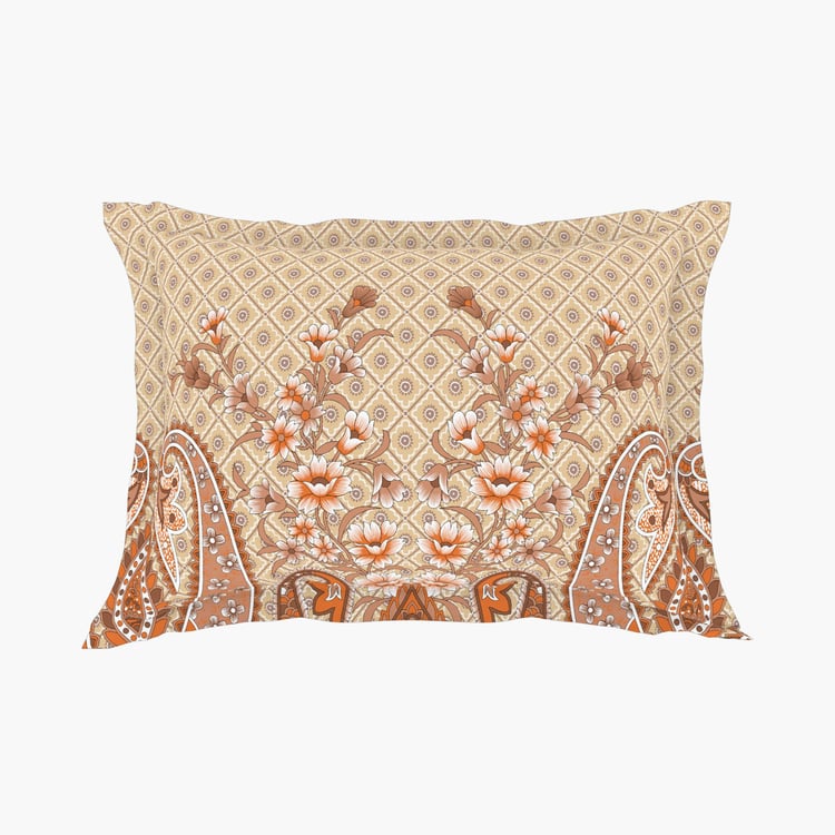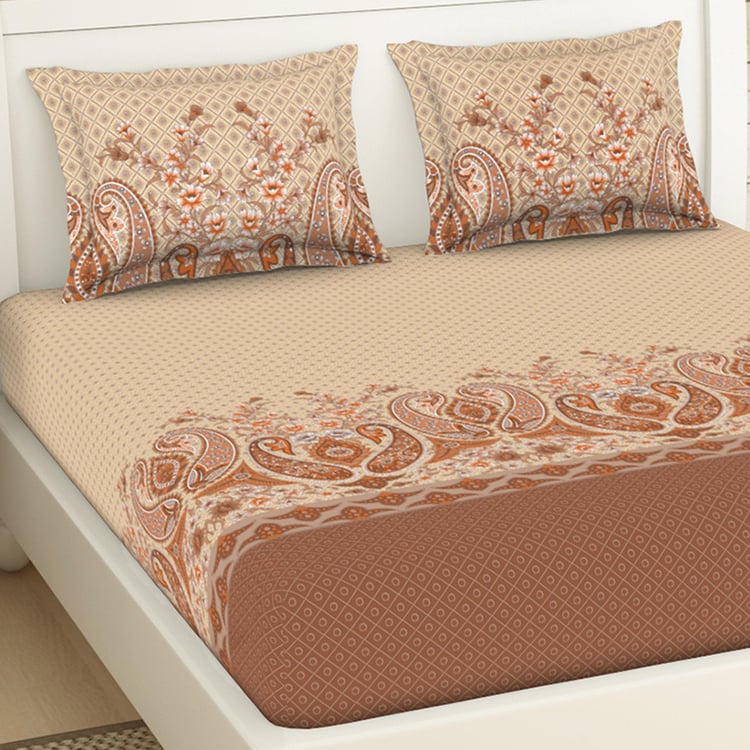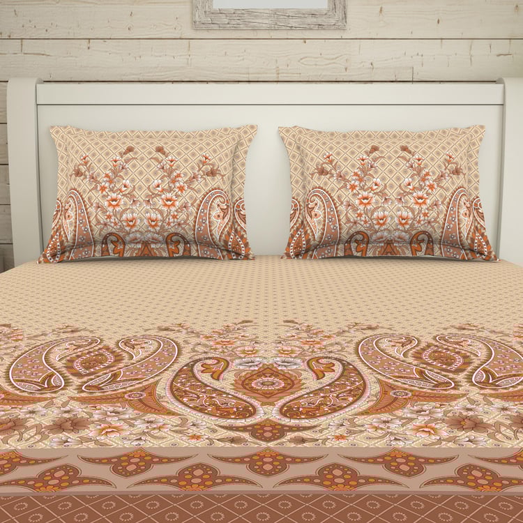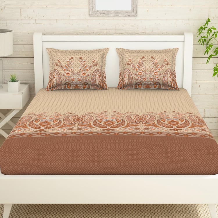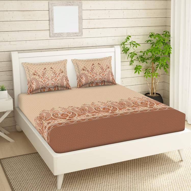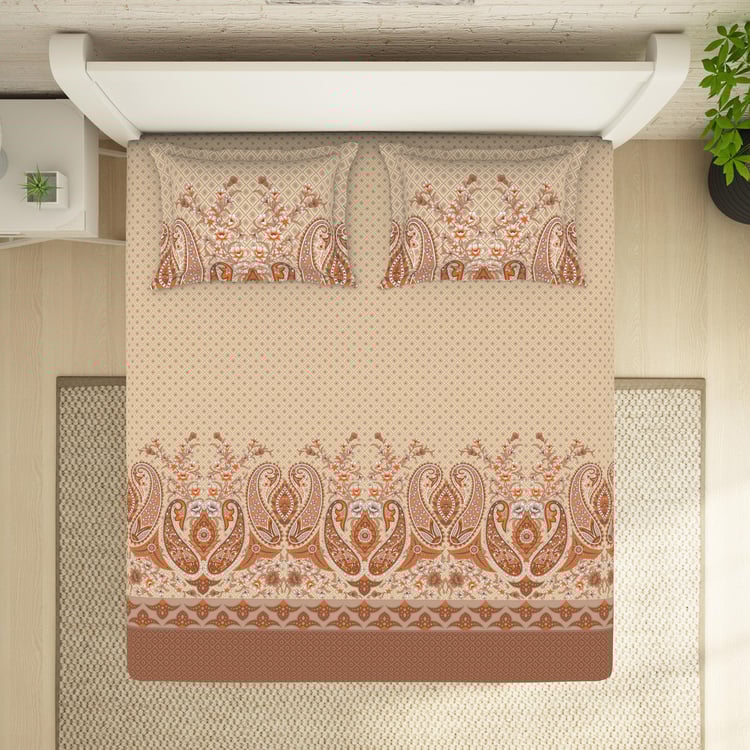 SPACES Essentials Brown Geometric-Print Super King Size Bedsheet Set - 274x274cm - 3Pcs