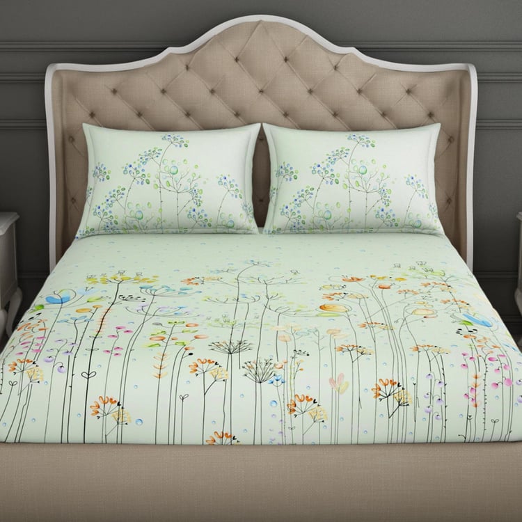 SPACES Essentials Printed Cotton Single Bedsheet with Pillow Cover-Set Of 2 Pcs.
