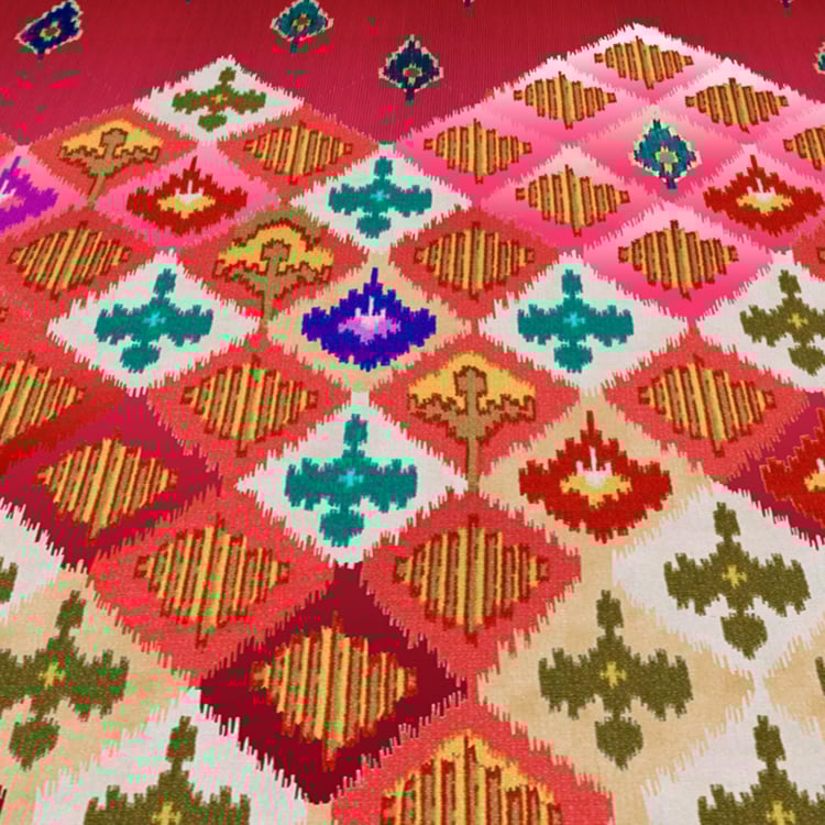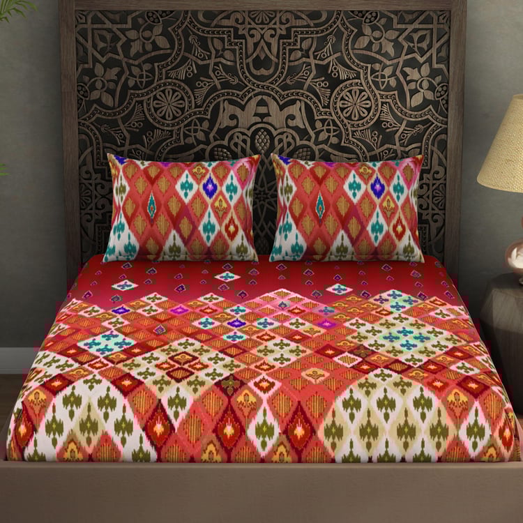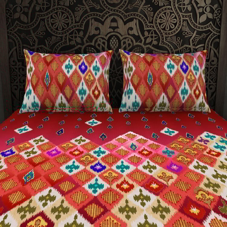SPACES Nalgona Dark Red Printed Cotton Large Bedsheet Set - 3Pcs