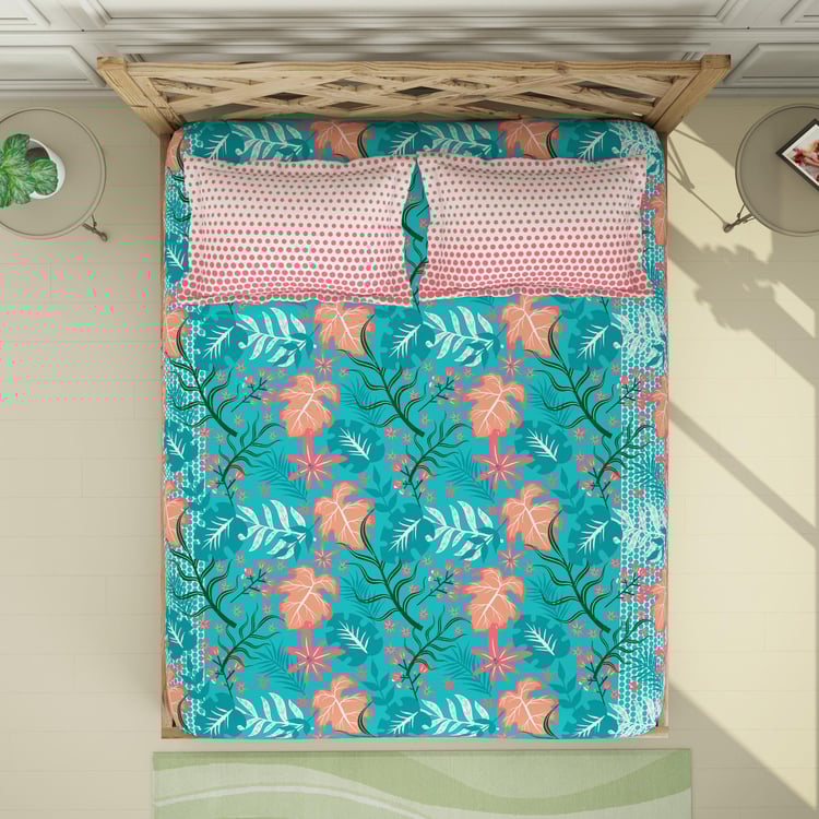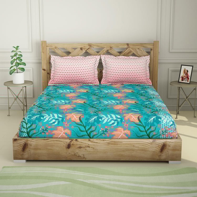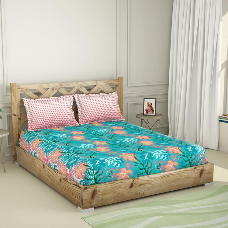 SPACES Printed 3-Piece Teal Cottony King Fitted Sheet Set- 1.98 m X 2.35 m