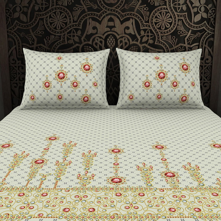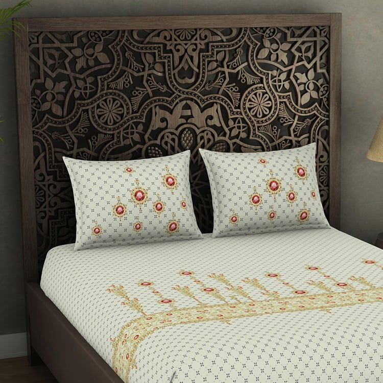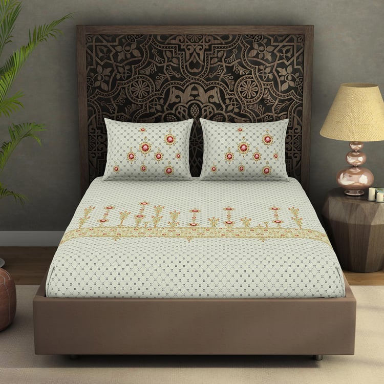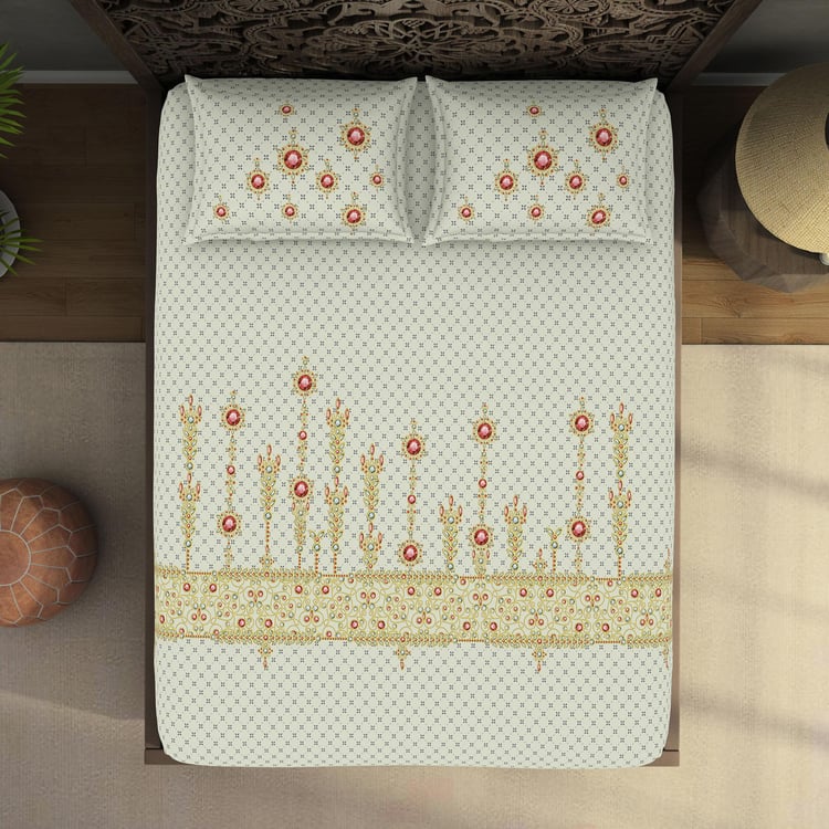 SPACES Rangana Cotton 300TC Printed 3Pcs Super King Bedsheet Set