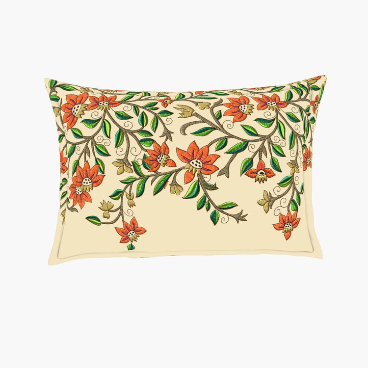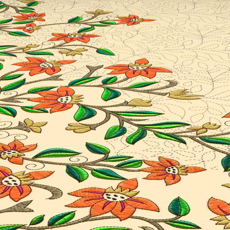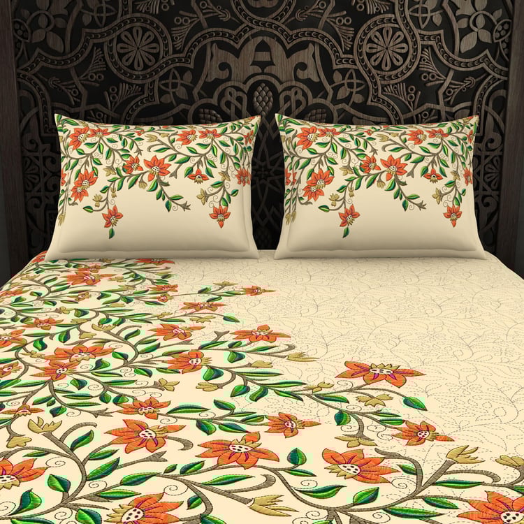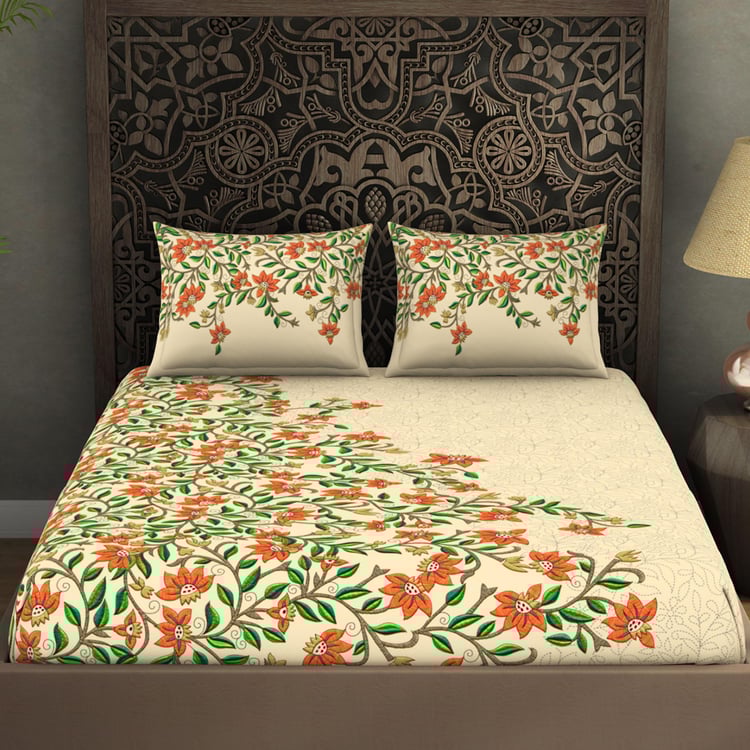 SPACES Rangana Debjani Beige Festival Printed Cotton Large Bedsheet Set - 3Pcs