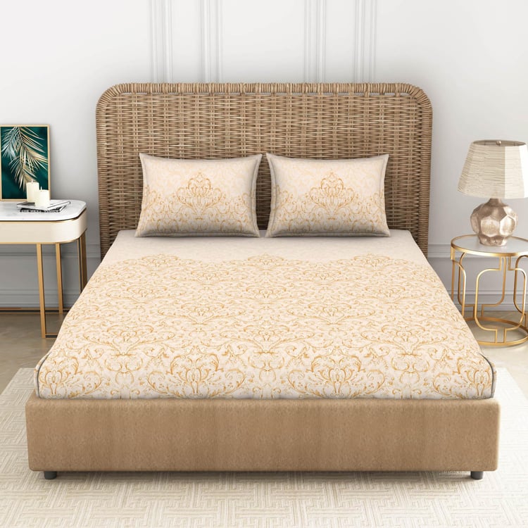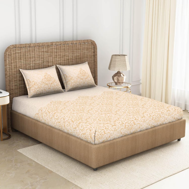 SPACES Reagalis Peach Printed Anti-Viral Cotton Super King Bedsheet Set - 274x274cm - 3Pcs